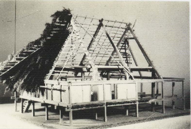 | dc.description.abstract | Modellen visar ett Muonghus. Jämför med Thohuset, modell 28. Förutsättningarna är desamma, men Mounghuset har en rymligare och öppnare interiör. Hela husets volym är 17 x 11 x 10 meter. Taket bärs upp av en stomme av bjälkar på kraftiga pelare i enkla rader utefter långväggarna.Förutom modell 28, se även modell 329. | sv |