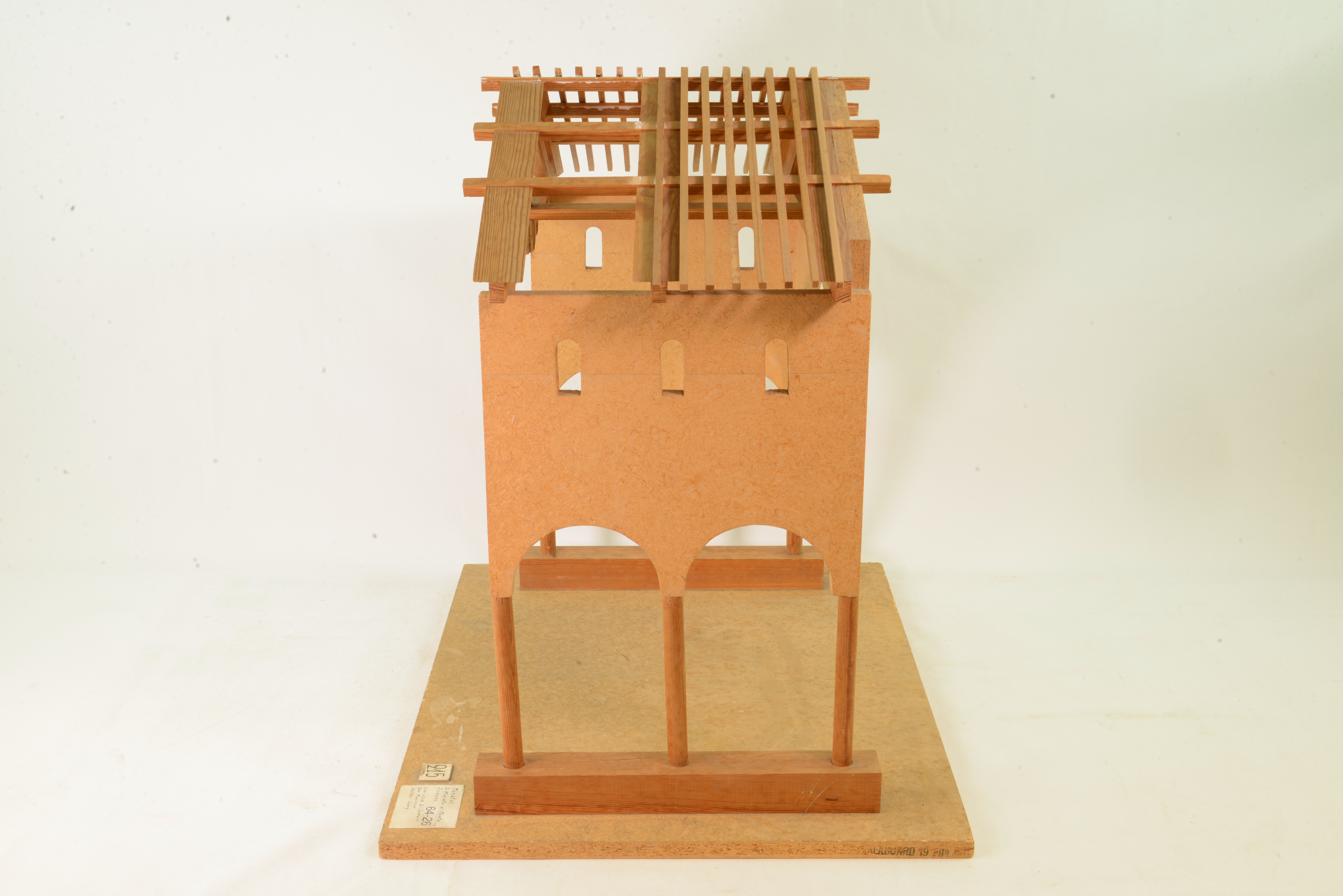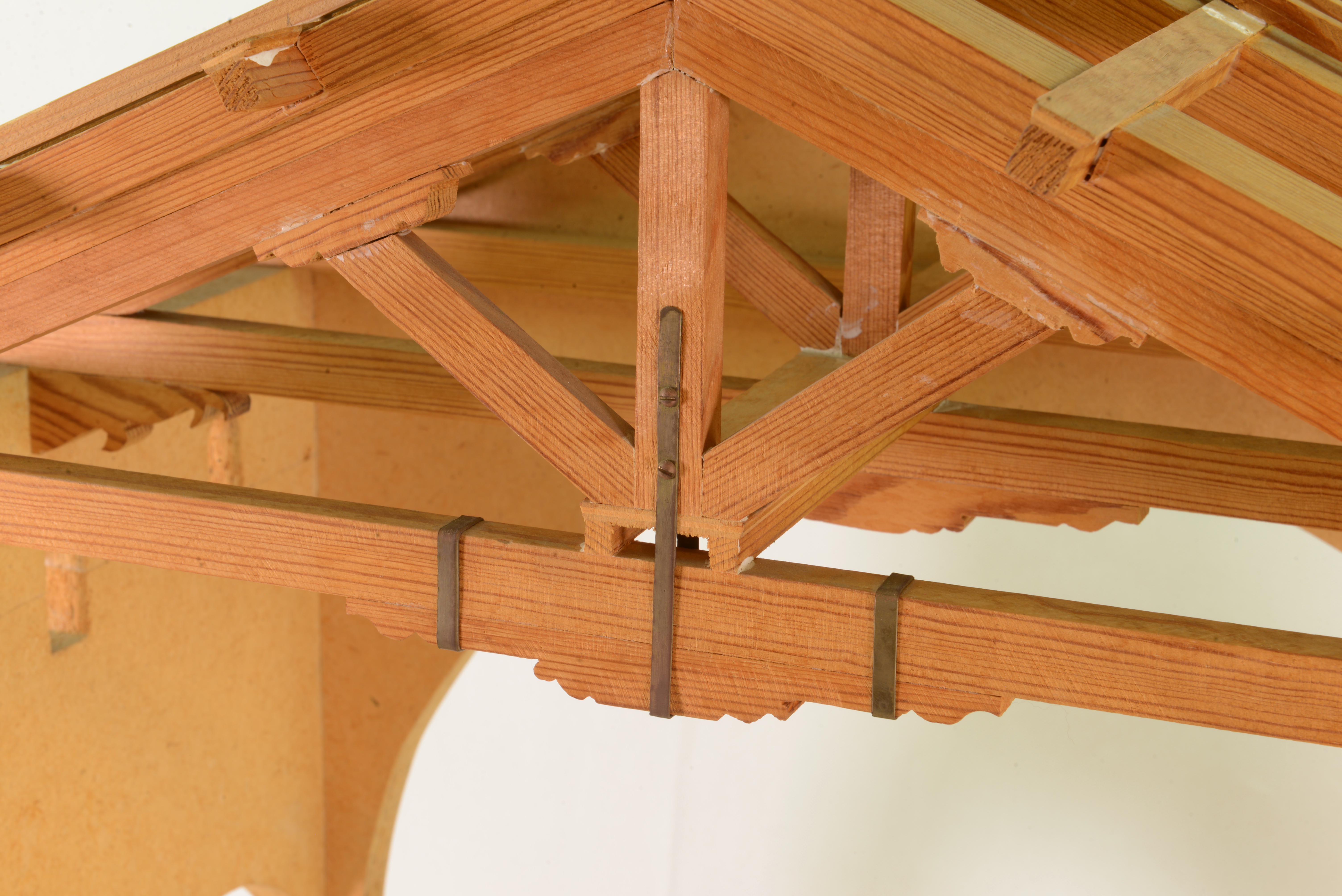 Klosterkyrkan San Miniato al Monte byggdes på 1000-talet. Mittskeppets väggmurar stöds av två gördelbågar. Takstolen förnyades på 1350-talet, men är noggrant kopierad efter den ursprungliga, med förebilder från antiken. De italienskt romanska kyrkorna behöll sinöppna takstol under medeltiden, då valvslagningstekniken utvecklades på andra håll i Europa. Se också modell 269.