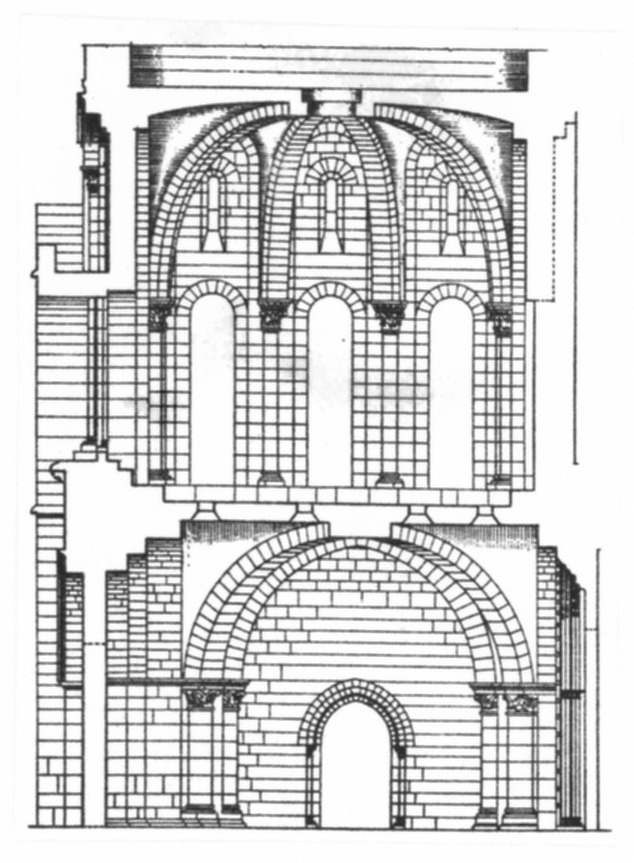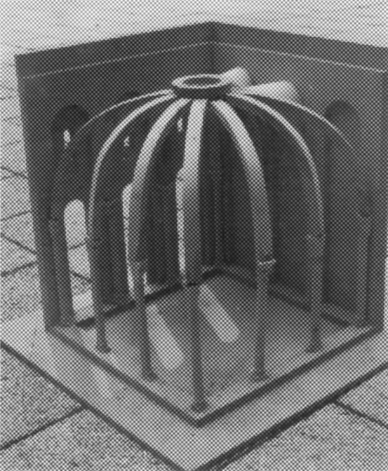 Den romanska kyrkan S Pierre i Moissac byggdes i början av 1100-talet. Modellen visar ribbsystemet i välvningen av taket i kyrkans tornkapell. Tolv kraftiga ribbor, sammanhållna av en tryckring, ger stöd åt valvkapporna i kupolen. Konstruktionen har troligen moriska förebilder.