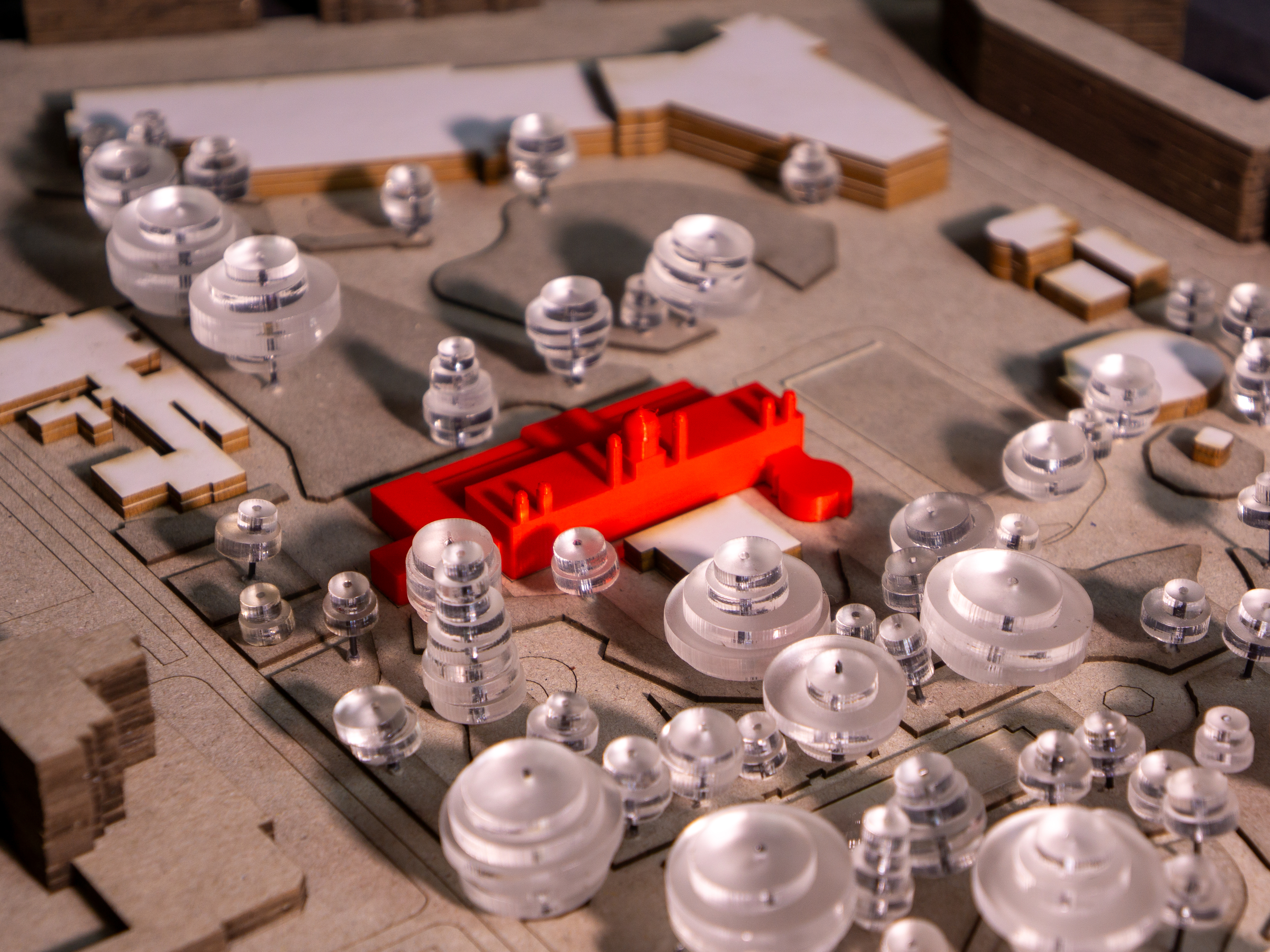 Gray paper, black MDF and acrylic. Aristo and laser cutter
