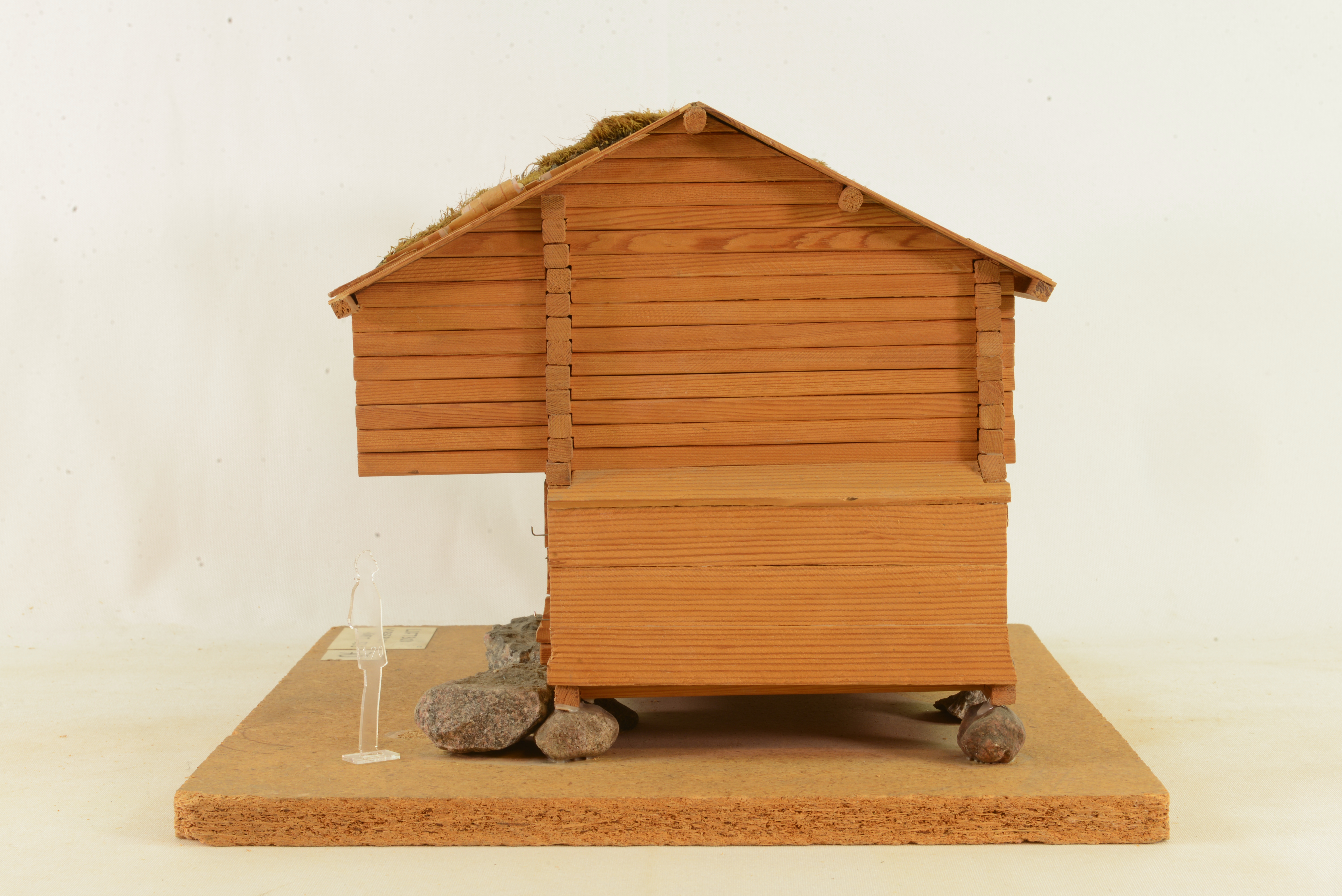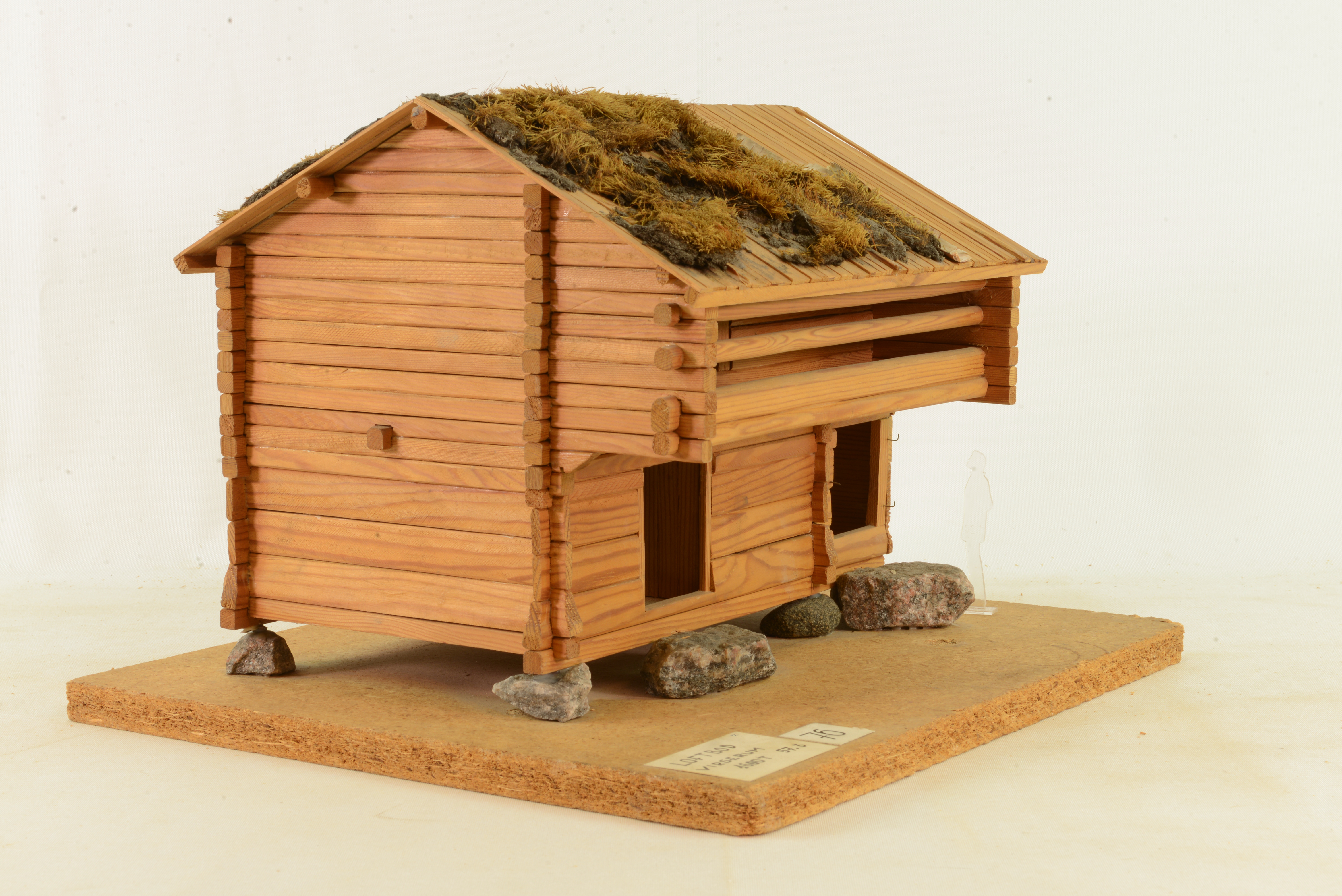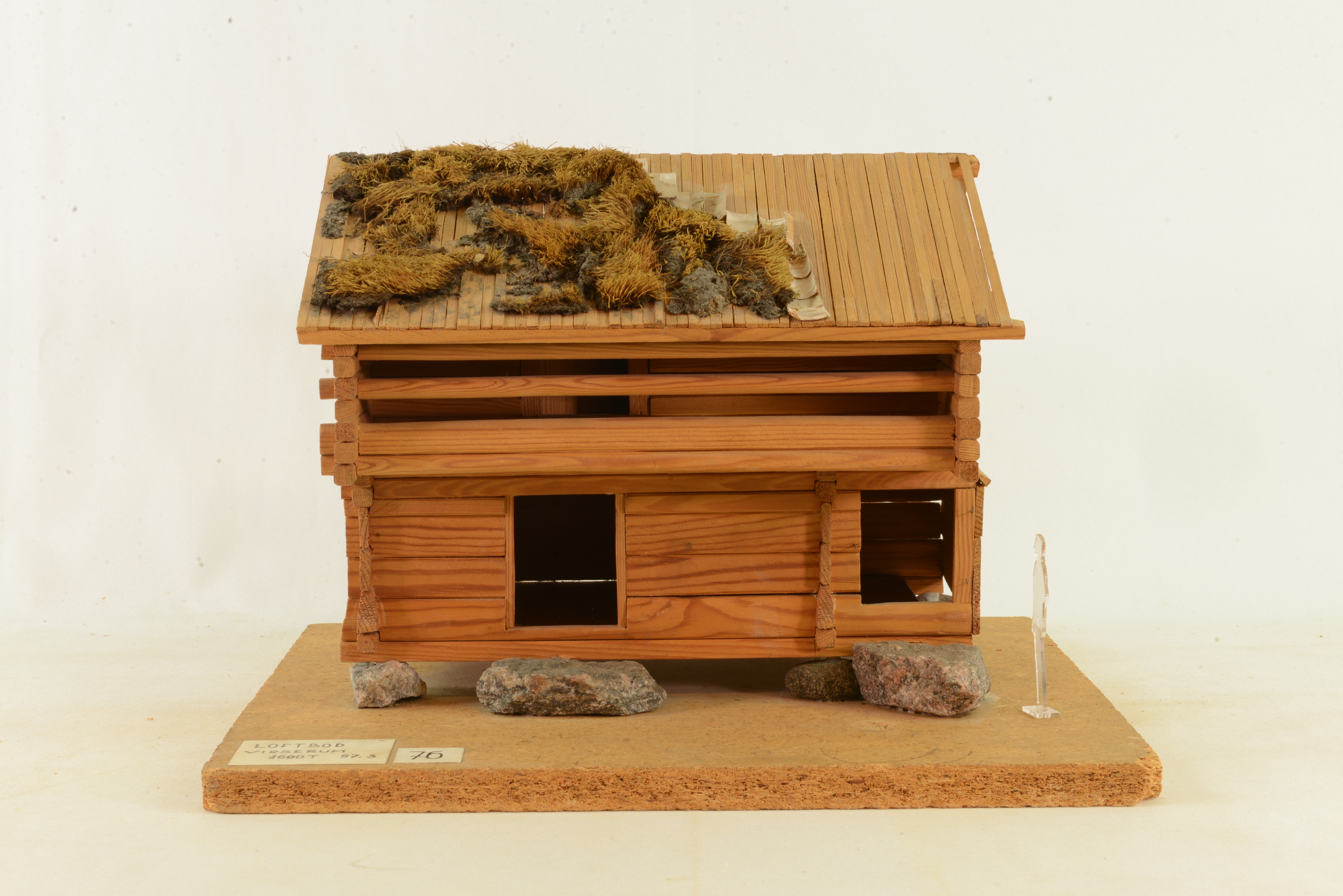Modellen visar en loftbod, som år 1900 flyttades till Skansen från Vensjögle by i Virserums socken. Loftboden har ingått i en samlad gårdsanläggning. I loftbodarna förvarades särskilt värdefulla varor, såsom mjöl, kött, spannmål och kläder och de byggdes större och bättre än andra bodar. Ofta innehåller loftbodarna flera rum men utan inre förbindelser och vanligt har varit, att de övre rummen använts som kläd- och sovbodar. Så är emellertid inte fallet i denna loftbod. I bottenvåningen finns två rum, förrådsbod och avträde. I övervåningen finns ett spannmålsförråd som nås via klivstock och svalgång.Efter flyttningen försågs boden med torvtak, men det har nu ersatts av vedtak, som var den tidigare taktäckningen. Boden kan vara byggd på 1600-talet eller tidigare.