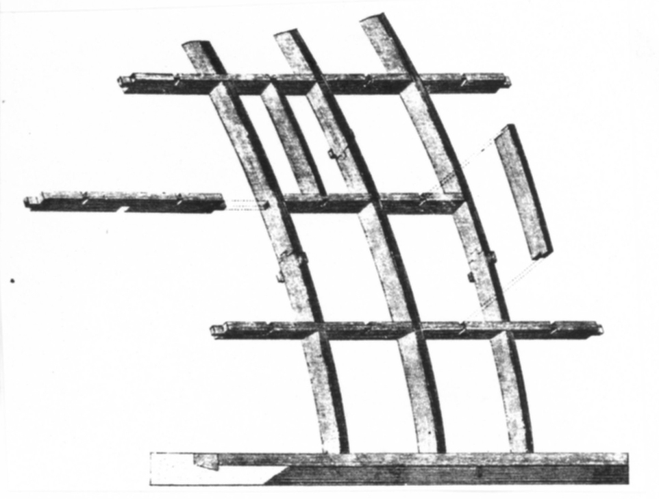 Le Case (1788-1829) utvecklade Philibert de l'Ormes metoder (se modell 90 och 152) att spänna träbågar med stora spännvidder. Han använde något större trästycken än de l'Orme och skar in dem i varandra på olika sätt i stället för att dymla och tappa.
