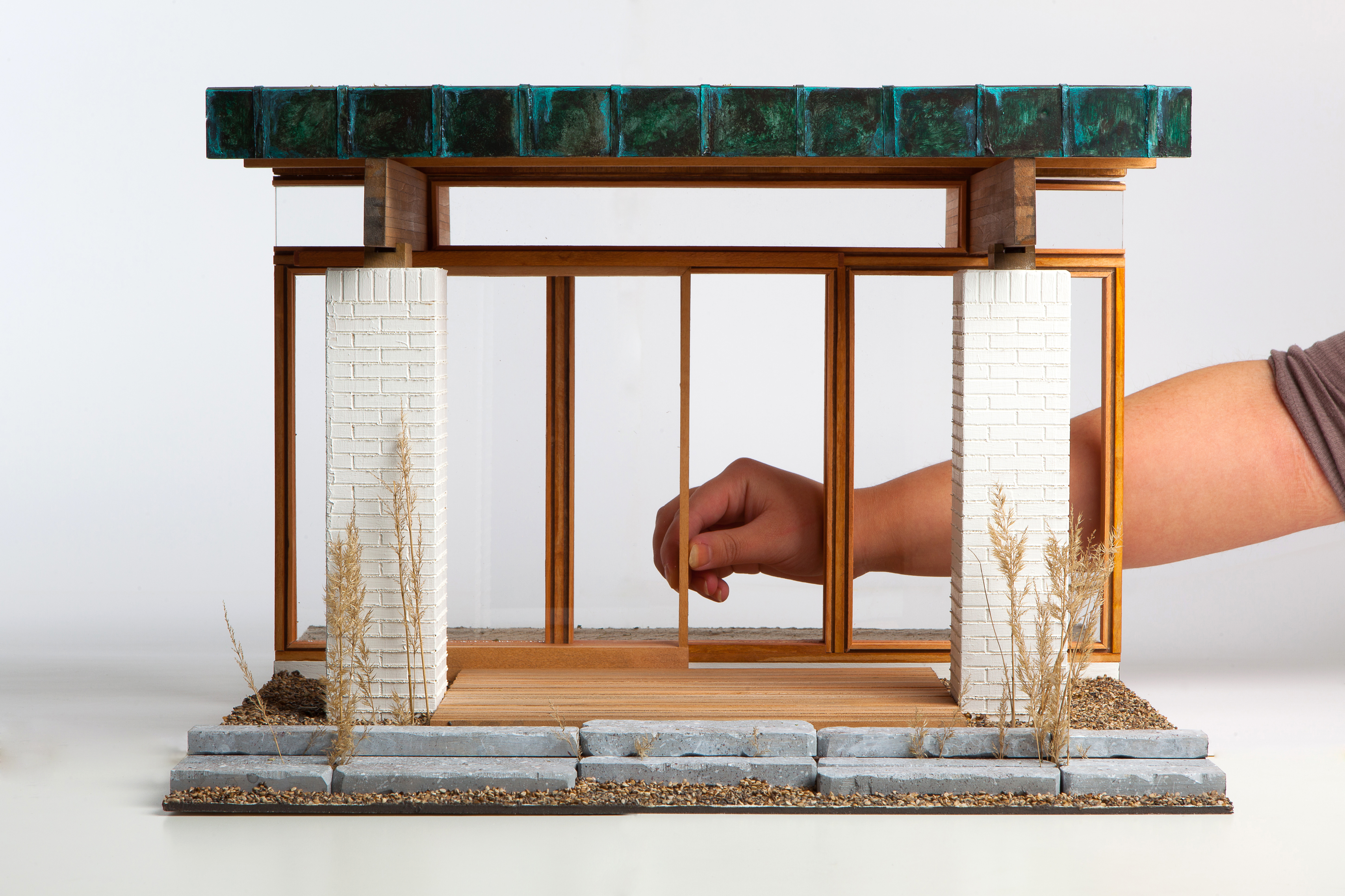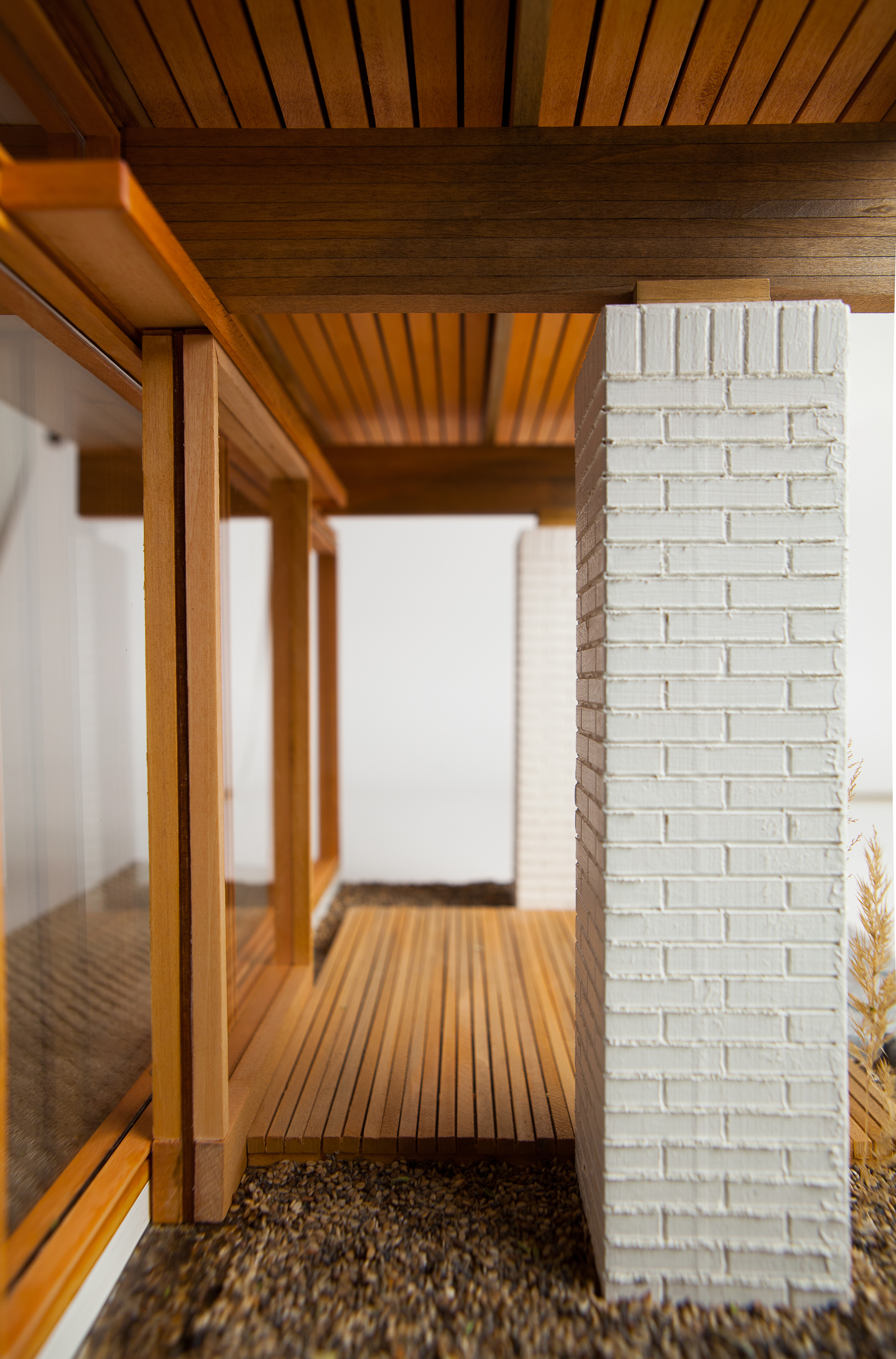 Villa Kjærholm 1:10. Villa Kjaerholm was built in 1962 at Rungstedt coast in Denmark. The building is Hannes second project in her career and is a 145 sqm villa with a visible construction and a simple, minimalistic design of wood and bricks. The interior is created by her husband Poul, who made all furniture especially designed for their home. The house was inspired by a pergola and the Japanese concept of “borrowing the landscape”. Hanne wanted the combination of open facades, closeness to the sea and the green surroundings to create a “zen” vibe in the house.