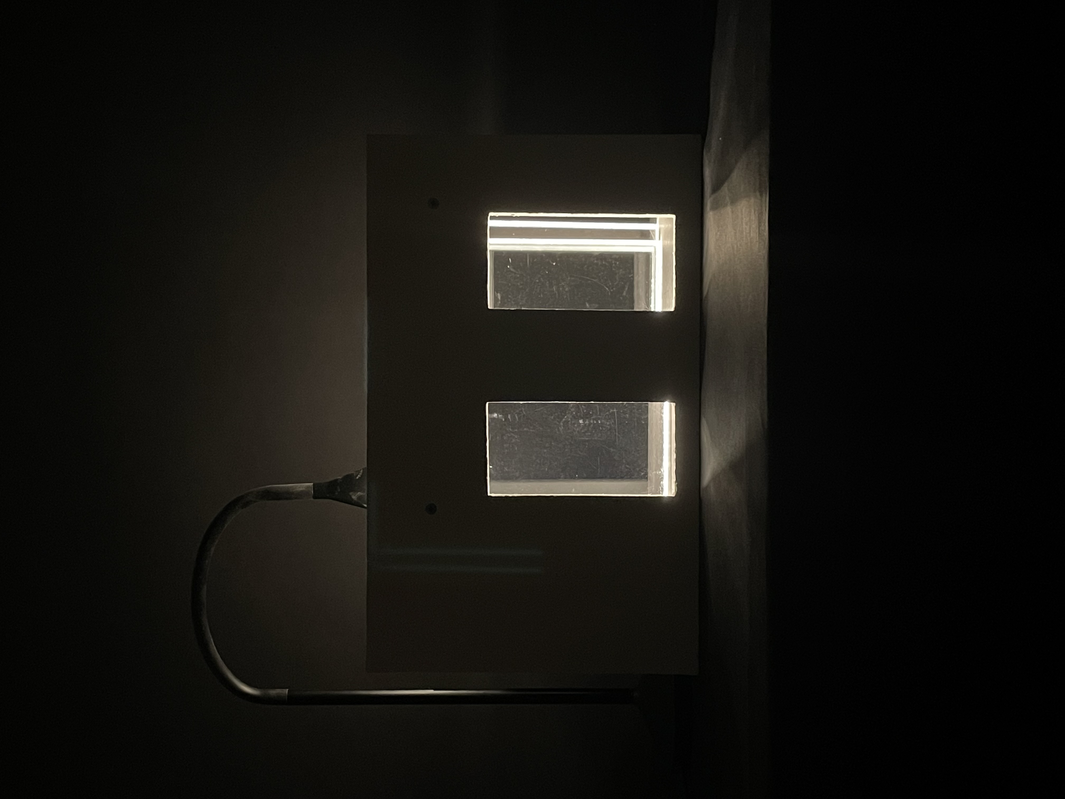 This is a concept model that shows how the light comes through the thin rectangular windows in the ceiling. We chose to show the light in the corridor that conects the old building to the extension. The windows in the ceiling is a reacurrent theme throughout the building.