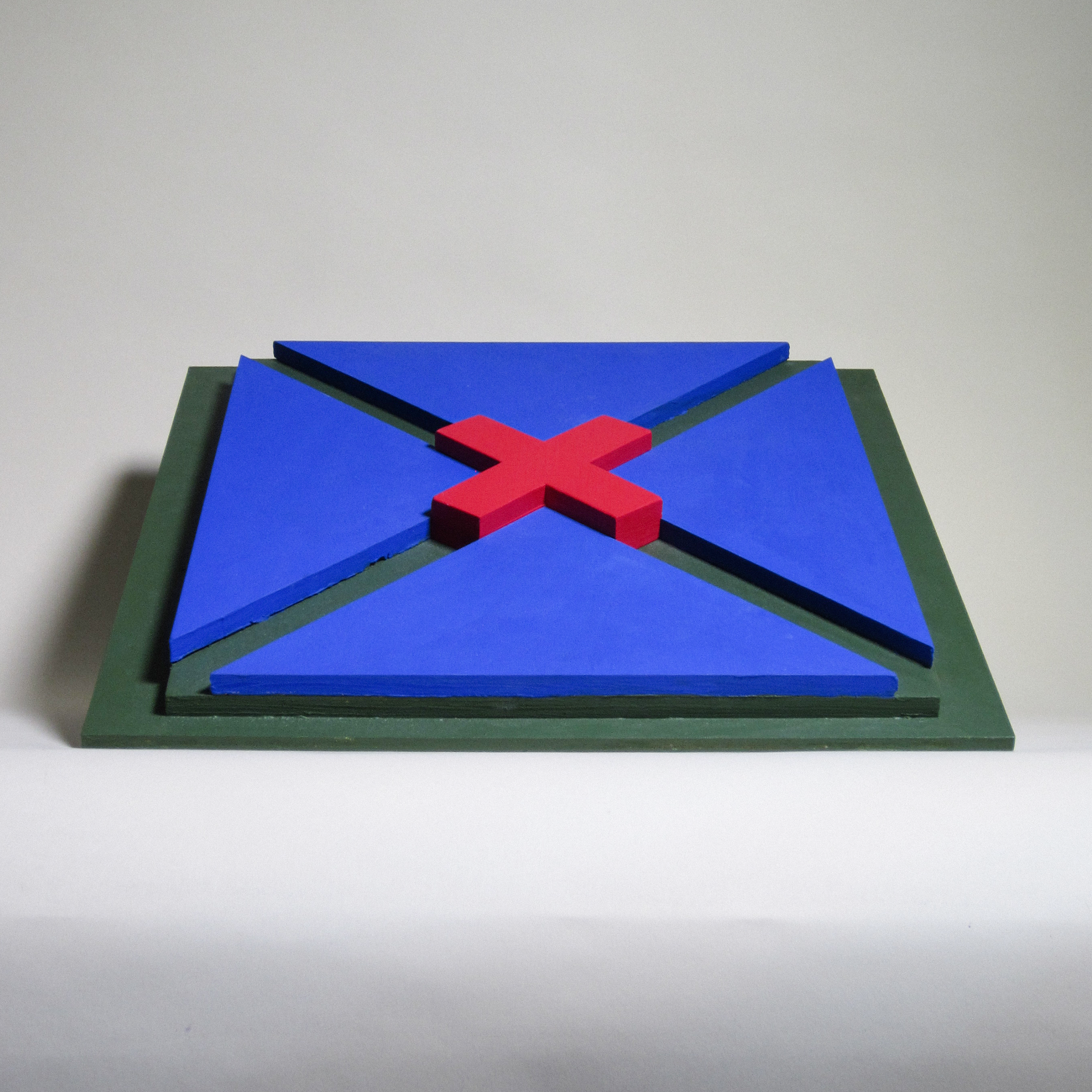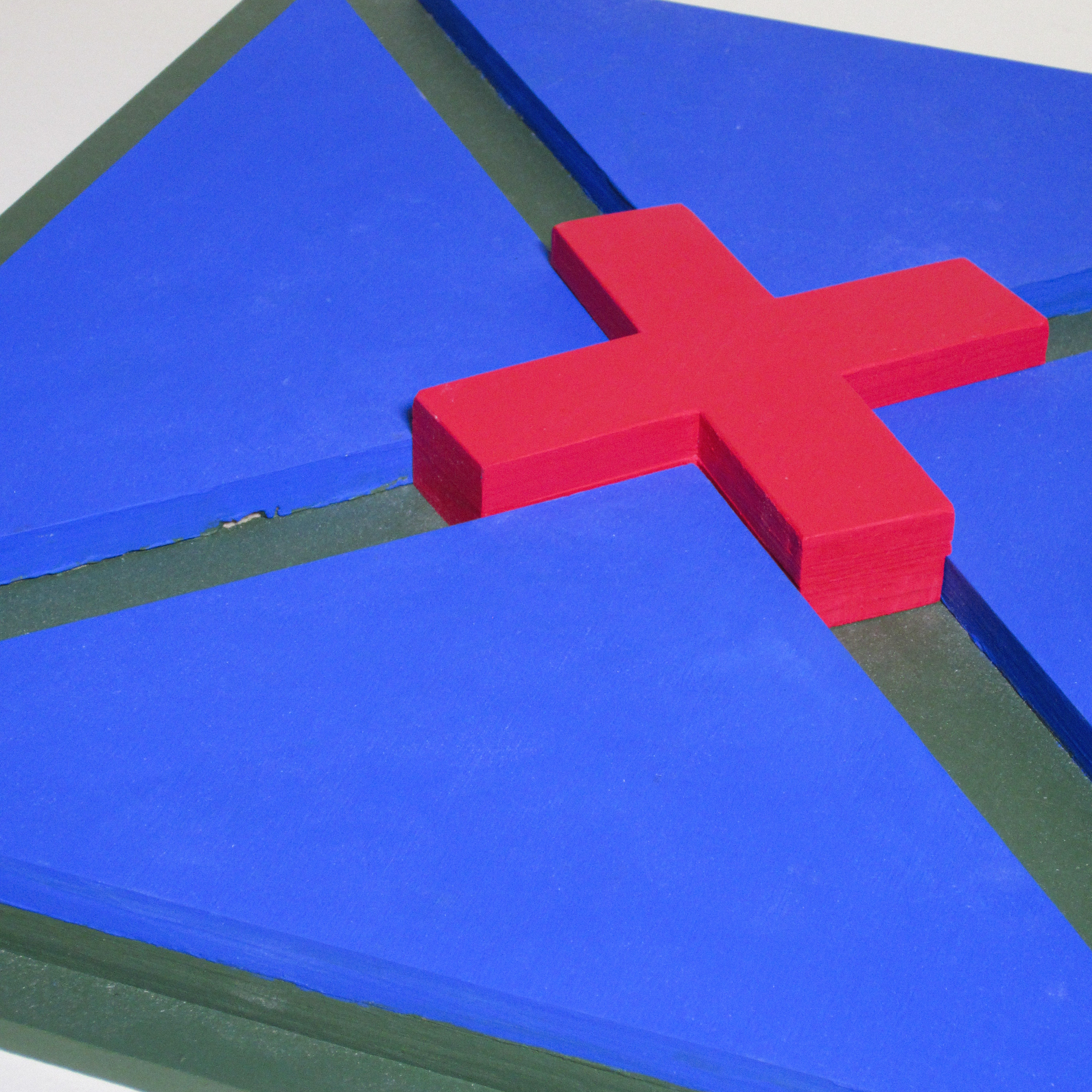 The detail model focuses on one of the many ornaments in the building. We chose a section of the repeating wooden pattern that can be found on the exterior doors painted in traditional red, green and blue. The pattern can also be seen on the main model, but here it is brought to true size and depth.