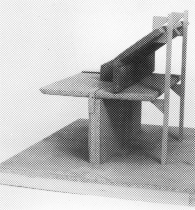 Modellen visar utformningen av takfoten. För att åstadkomma låg höjd på takets yttre del avvattnades taket invändigt och genom en ränna 2 m upp från takfoten.