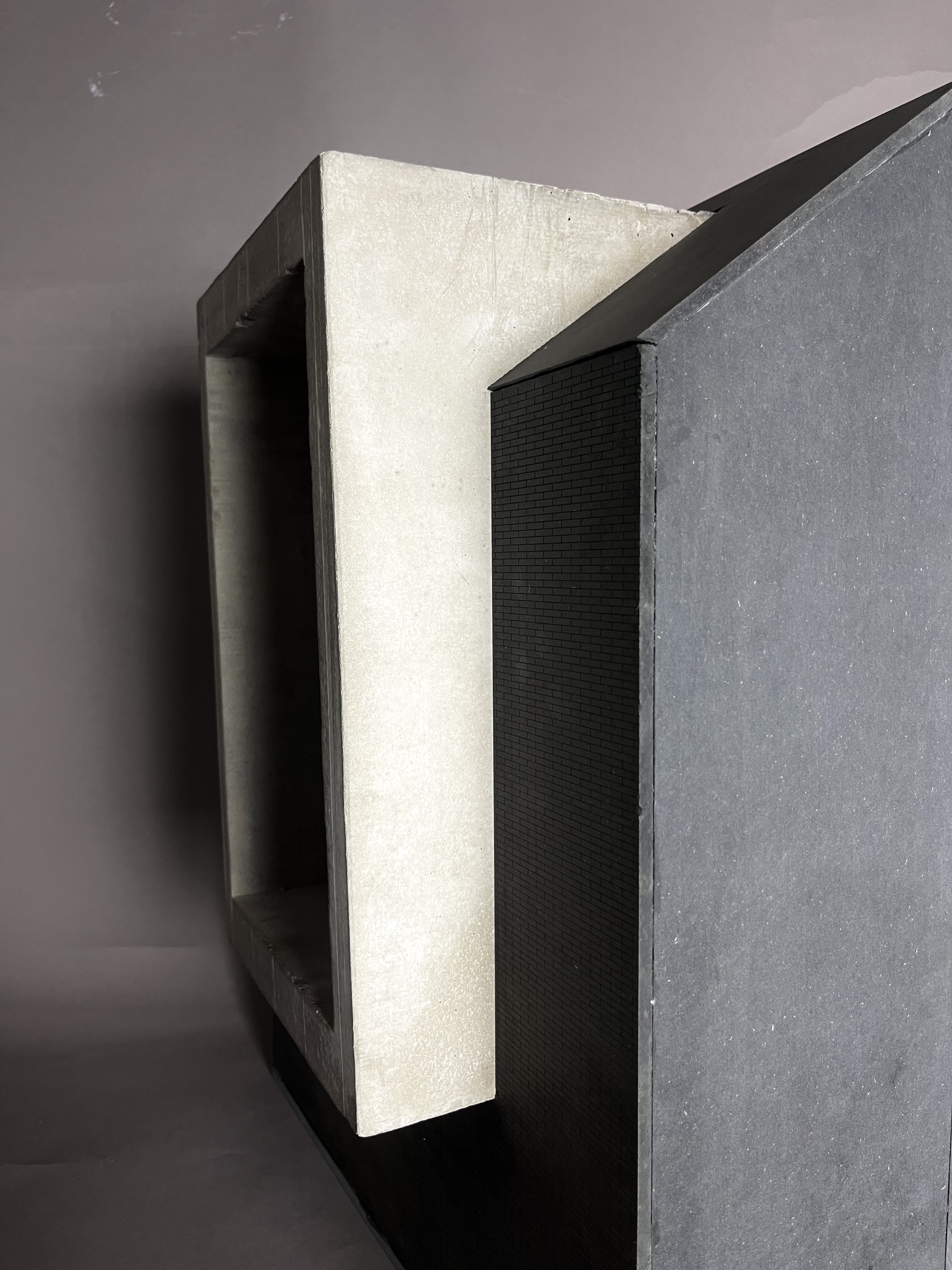 Ett fasadutsnitt av tillbyggnaden av Bruksgården, Höganäs. Fasaden i handslaget tegel visar omsorg till den historiska leran och fogen och förstärker dialogen med den värdefulla platsen och omgivande miljön. Burspråket i platsgjuten betong som sträcker sig över flera våningsplan, skapar volym och kontrast.