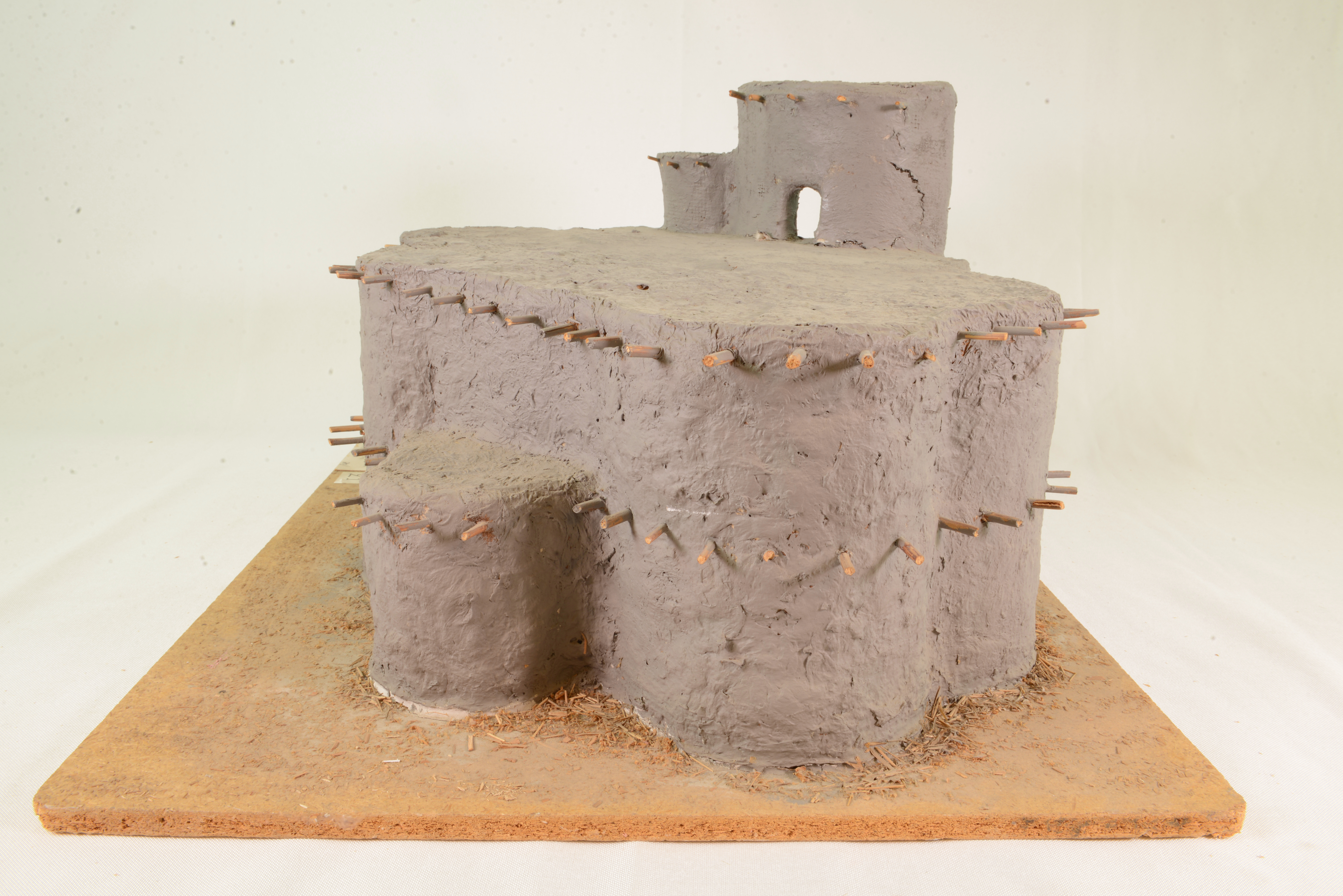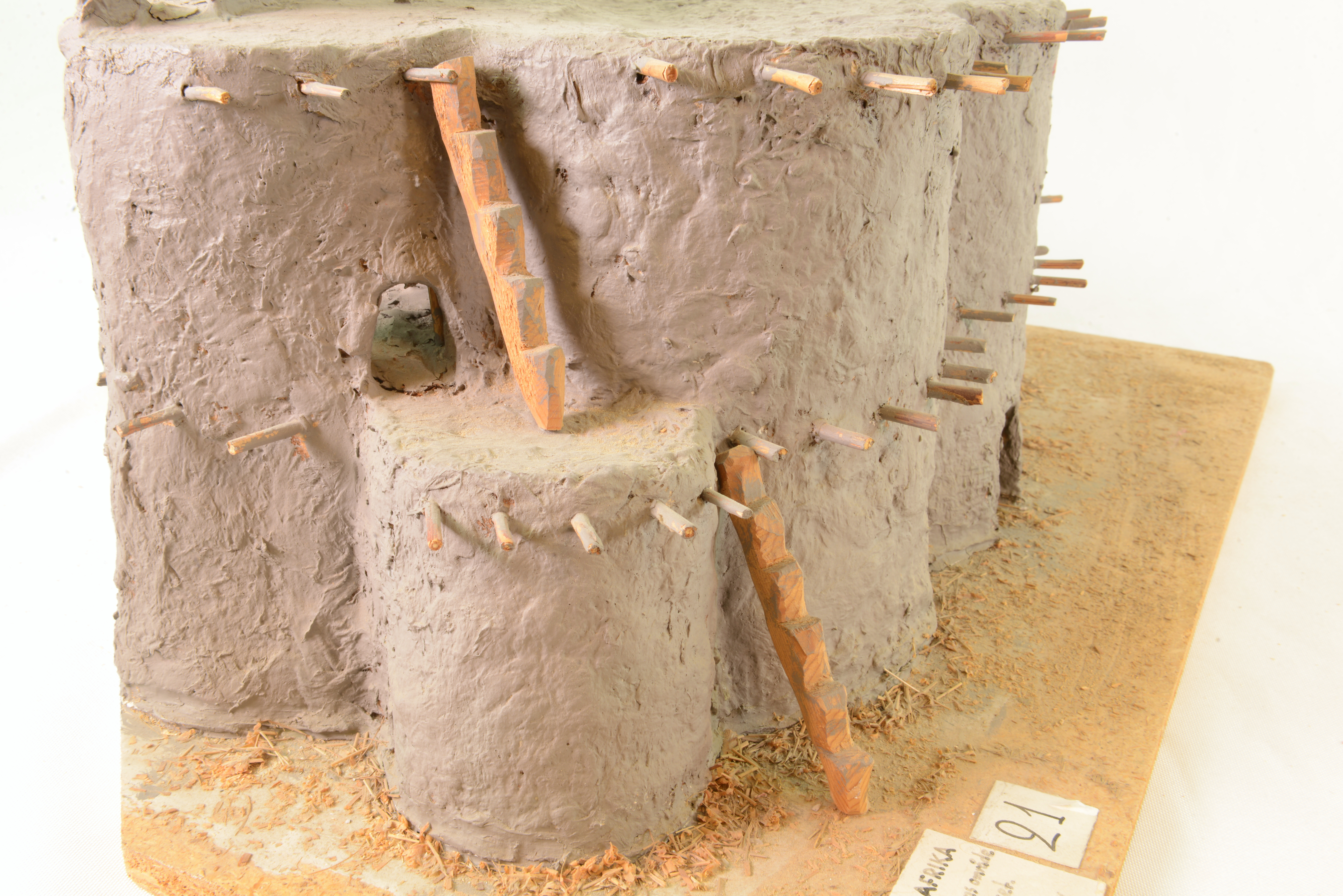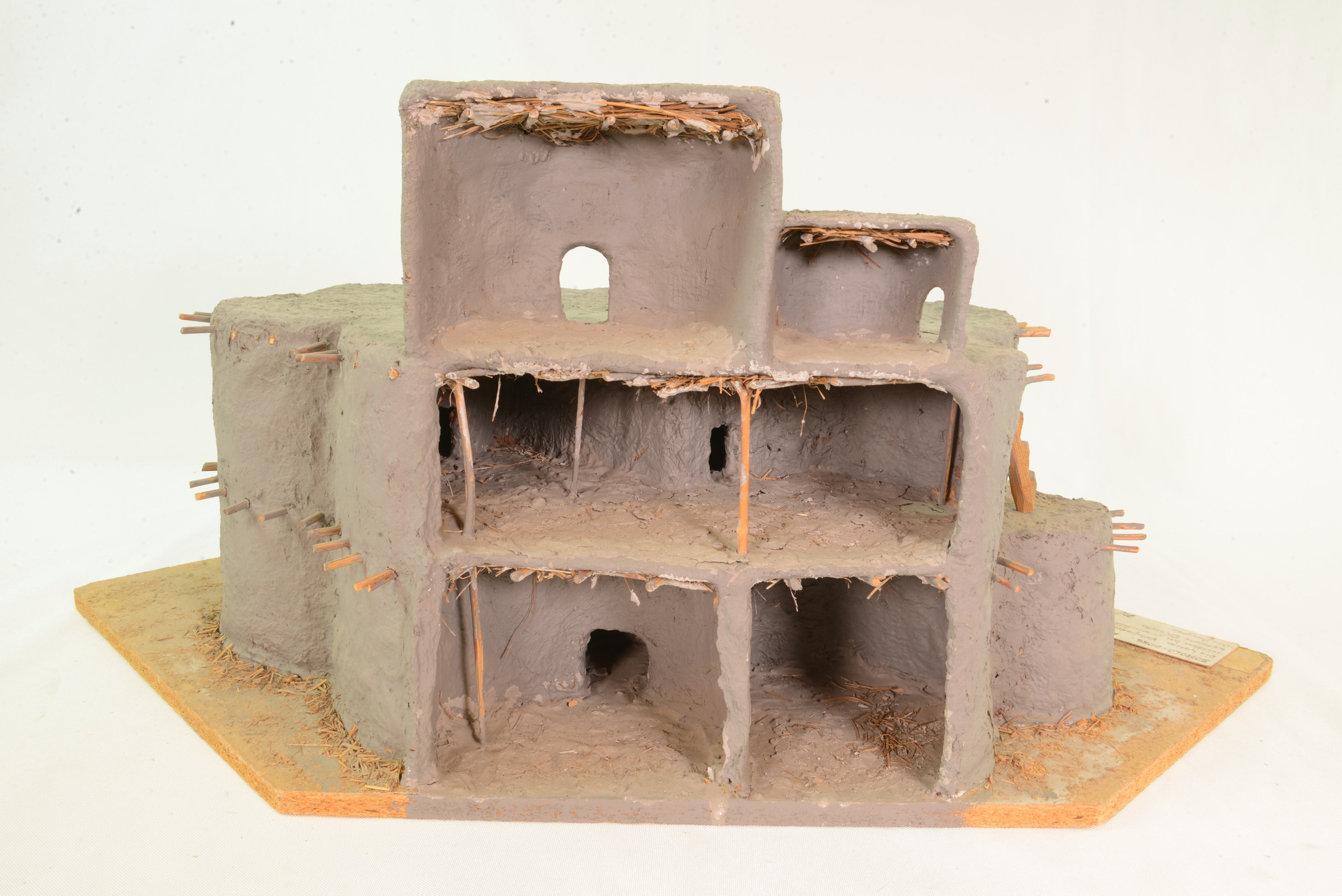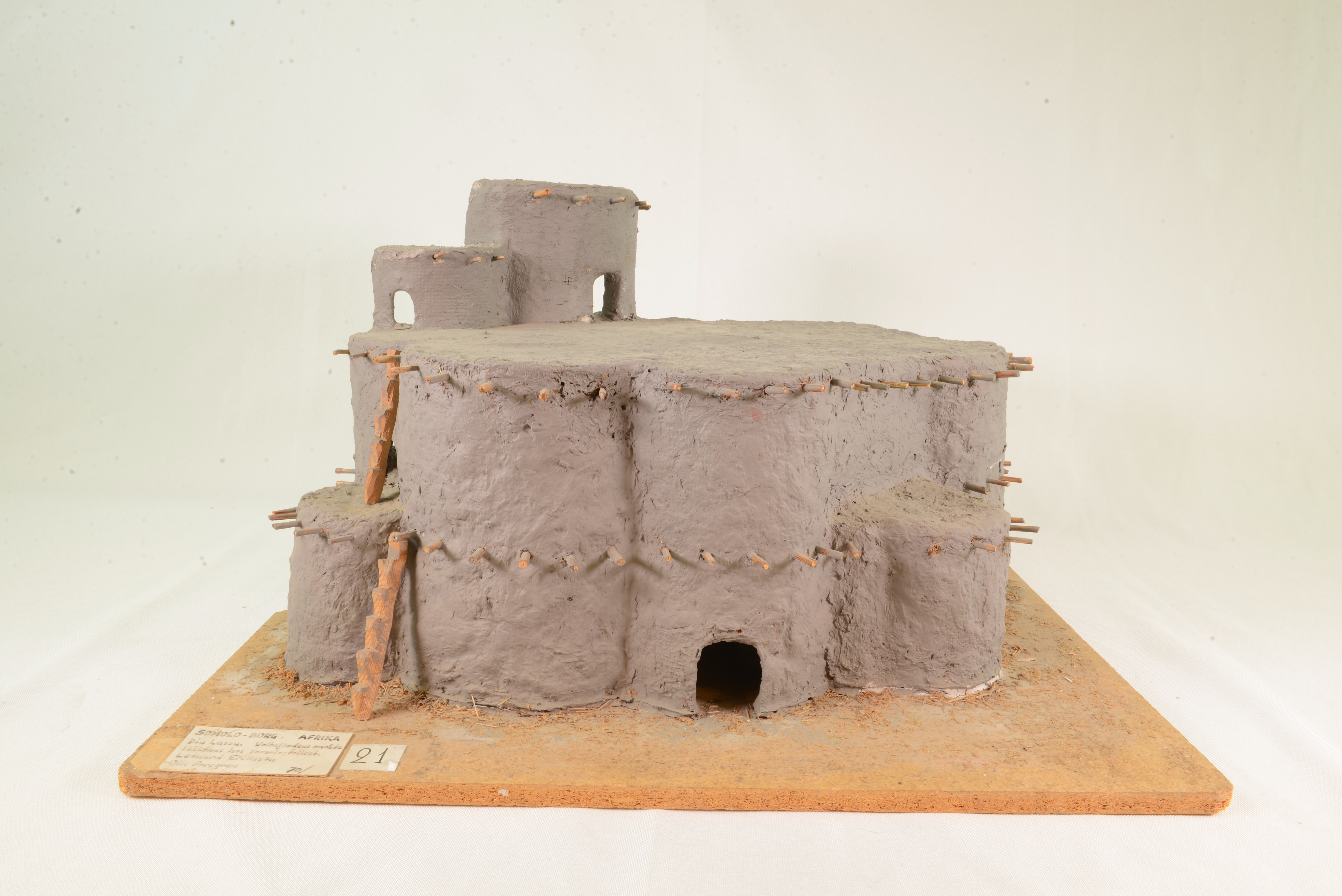 | dc.description.abstract | Modellen visar ett släkthus hos Somolofolket i Voltaområdet i Västafrika. Borgen användes kring 1910. Den var byggd i halmförstärkt lera. De tunga taken bars upp av invändiga trästommar. Byggnaden är väl anpassad till ett torrt klimat med heta dagar och kalla nätter. Den stora, samlade volymen och de tjocka väggarna med få öppningar värmer långsamt upp borgen under dagen och magasinerar värme till natten. | sv |