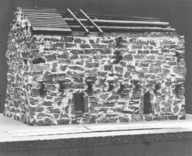 Modellen visar en del av ladugårdslängan på Kattlunds gård på södra Gotland. Denna del, fähuset med foderskulle, är från medeltiden, då byggnaden emellertid var lägre med ett brant agtäckt tak. Väggarna är murade av stora sandstensblock (i jämna skift) och hophållna av tvärbjälkar, vilkas ändar genomdragits med starka kilar, som verkar som ankarslut. Ändarna skyddas mot röta av utskjutande stenflisor och holkar av trä. Påbyggnaden är gjord på 1800-talet och här är muren enklare.Fähuset har varit inrett med fyra båsrader utefter tvärgångar innanför de två portarna, som ledde till gödselstaden invid vägen.