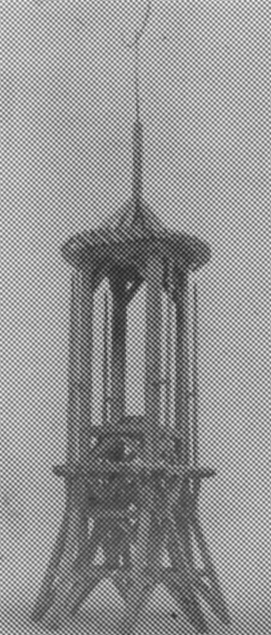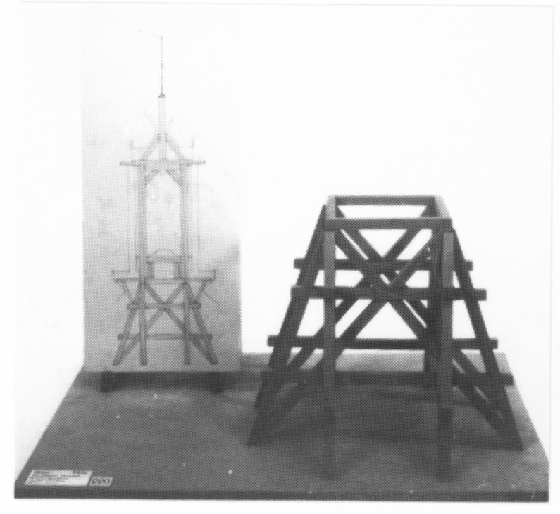 Stockholms stadshus uppfördes åren 1911-1923. Modellen visar den nedre delen av Stora Tornets träkonstruktion. Trästommen med järnspiran är 43 m hög. Konstruktionen är byggd av ett minimum av grova sammansatta strävor, sammanhållna med bultar och dymlingar av ask. Allt trä är tjärstruket och konstruktionen är väl ventilerad. Konstruktionen står på gjutjärnsskor, som är förankrade i tornmuren. Till ledning för ritning och utförande av de komplicerade hophuggningsdetaljerna gjordes en modell.