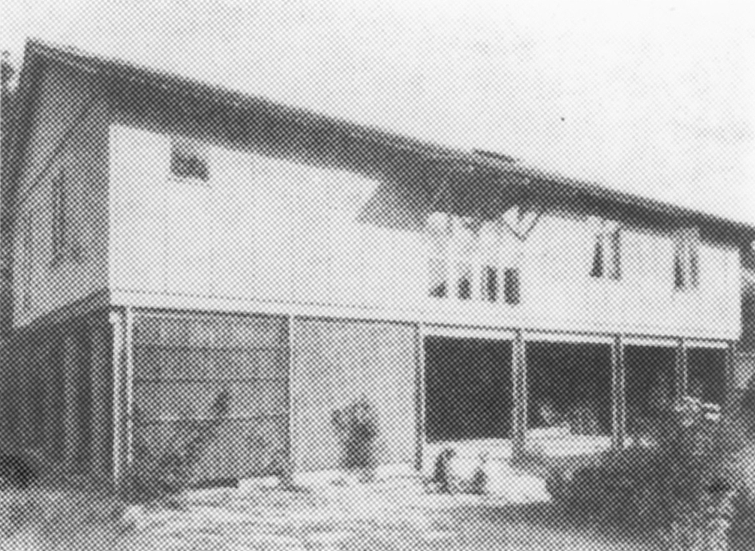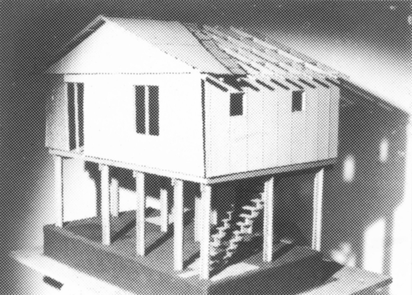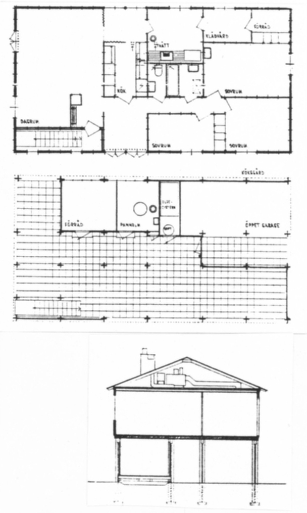 "Modellen visar det första av 13 provhus, som uppfördes vid Sillnadsgatan 1949-52. Husen är ritade av ark. Erik Friberger. Här prövades olika fabrikstillverkade stomelement och nya installationsidéer. Bostadsplanerna är funktionsbestämda och anpassade till rationaliserat hushållsarbete och tillkomna i samarbete med ägarna. Hus nr 1 har bostadsplanet 2,5 m över mark, för att ge utrymme för täckt uterum och bilplats. Huset står på en "punktgrund" bestående av pelar- och grundplatteelement i trä. Väggelementen i bottenvåningen stadgar. Samtliga element är tillverkade i trämaterial. Innerväggarna är flyttbara och monterade med hjälp av lister i golv och tak. Ytterväggarna är klädda med impregnerad träpanel och taket med korrugerade asbestcementplattor, ett nytt byggnadsmaterial. Elledningar dras i cementfogar och taklister. Huset har takvärme; varmluft cirkulerar mellan takstolselement och innertak, som avger strålningsvärme."