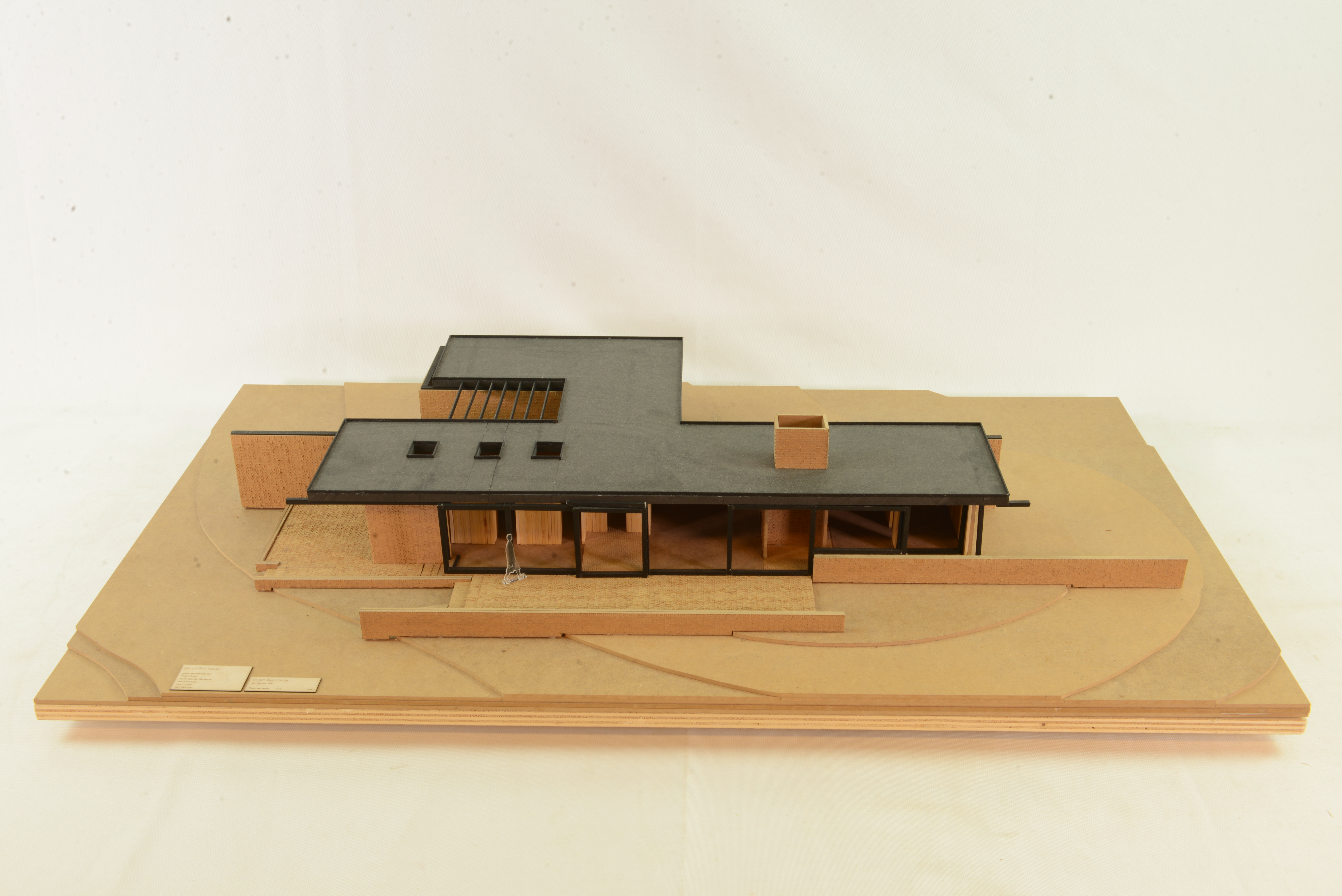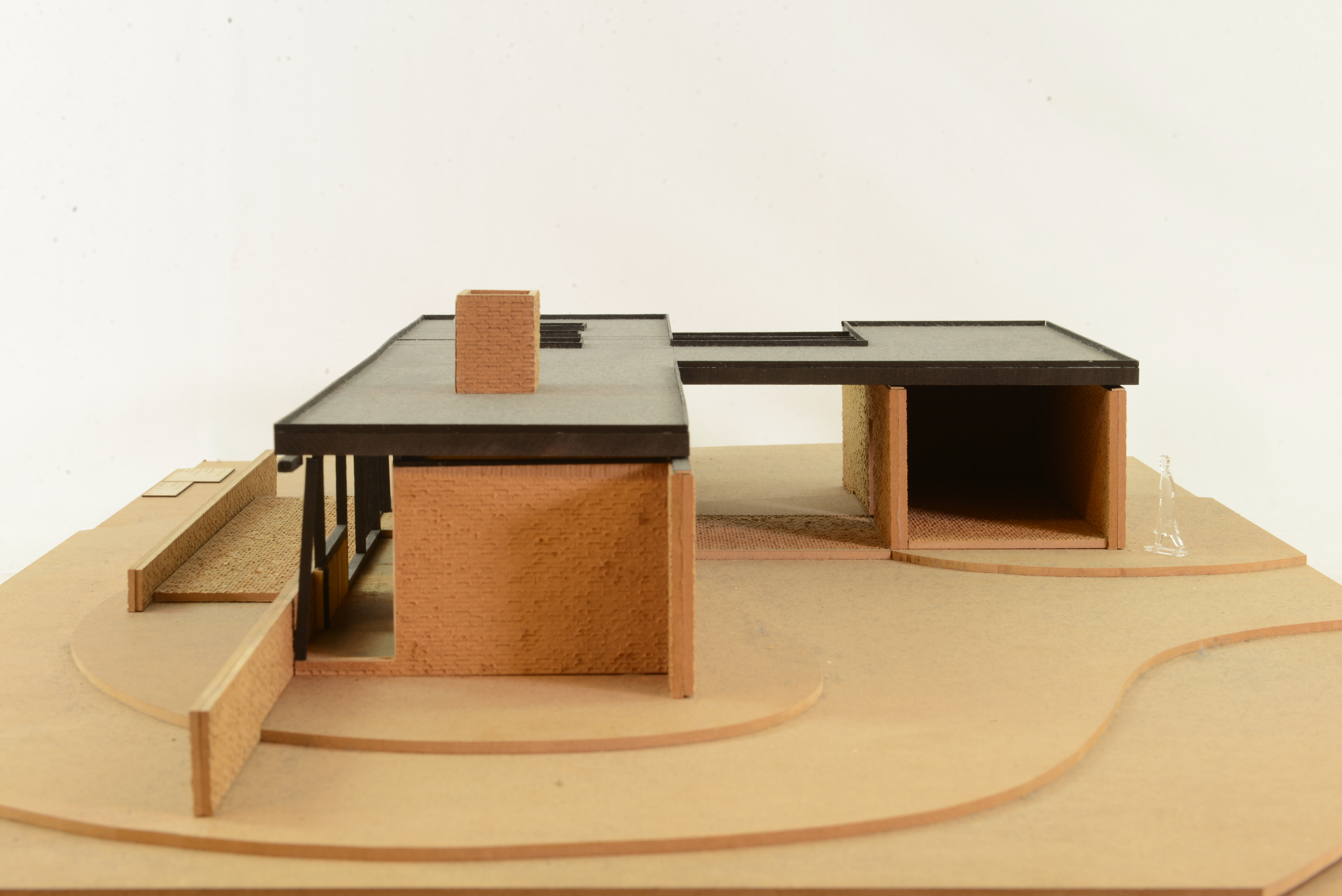 Huset: CNC-fräst mdf för tegelstruktur, lind. Landskap: mdf