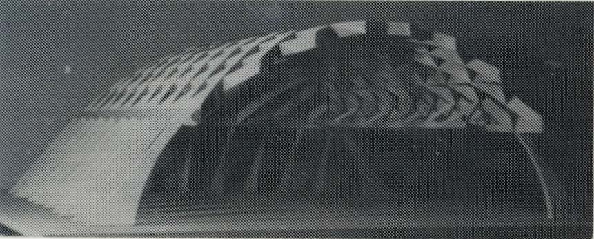 1936 konstruerade Pier Luigi Nervi två identiska flyghangarer (20 x 50 m) för italienska flygvapnet i Orvieto. Han valde av ekonomiska och konstruktiva skäl att över hallen slå valv av dubbla serier ribbor i armerad betong. Krafterna fördelades jämnt över ytan ner mot de assymetriskt placerade stöden. Långsidan med portar hade endast ett mittstöd och en stor fackverksbalk över öppningen fungerade som vindavstyvning.Den komplicerade konstruktionen var vid den tiden omöjlig att beräkna i detalj, så efter noggranna beräkningar gjordes en statisk analys i modell. Senare kom Nervi att utveckla hangarbyggandet med prefabricerade system. Samtliga Nervis hangarer förstördes några år senare under kriget.