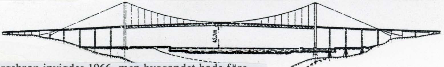 Älvsborgsbron invigdes 1966, men byggandet hade föregåtts av drygt 60 års utredningar och projekteringar. Kravet på stor spännvidd och stor fri höjd ända in till kajkanterna, ledde till det slutliga valet av en hängbro. Bron är försedd med förstyvningsbalkar i fackverk, som var det vanliga för tiden för bygget. Jämför med modell 332.