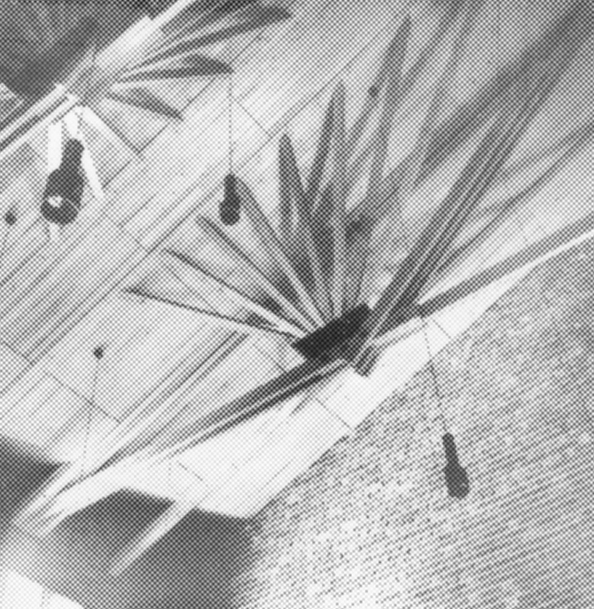 | dc.description.abstract | Modellen föreställer konferenssalen i Säynätsalos kommunalhus från 1952. Rummet är lika högt som brett (9 m). Den bärande takkonstruktionen finns inne i rummet och består av huvudtakstolar, som via snedställda strävor bär sekundära balkar. En spegel är placerad i modellen så att taket av trä kan ses. | sv |