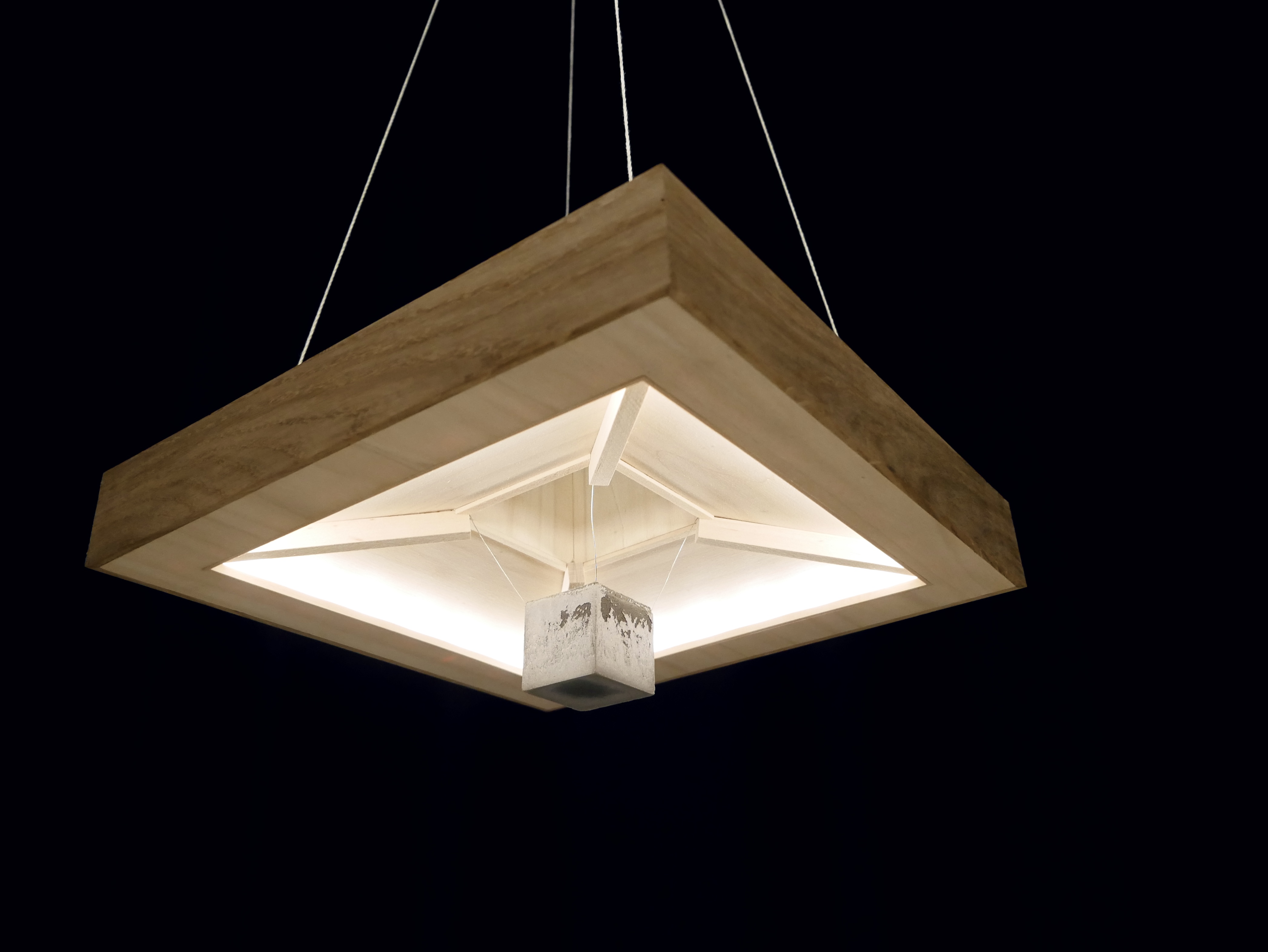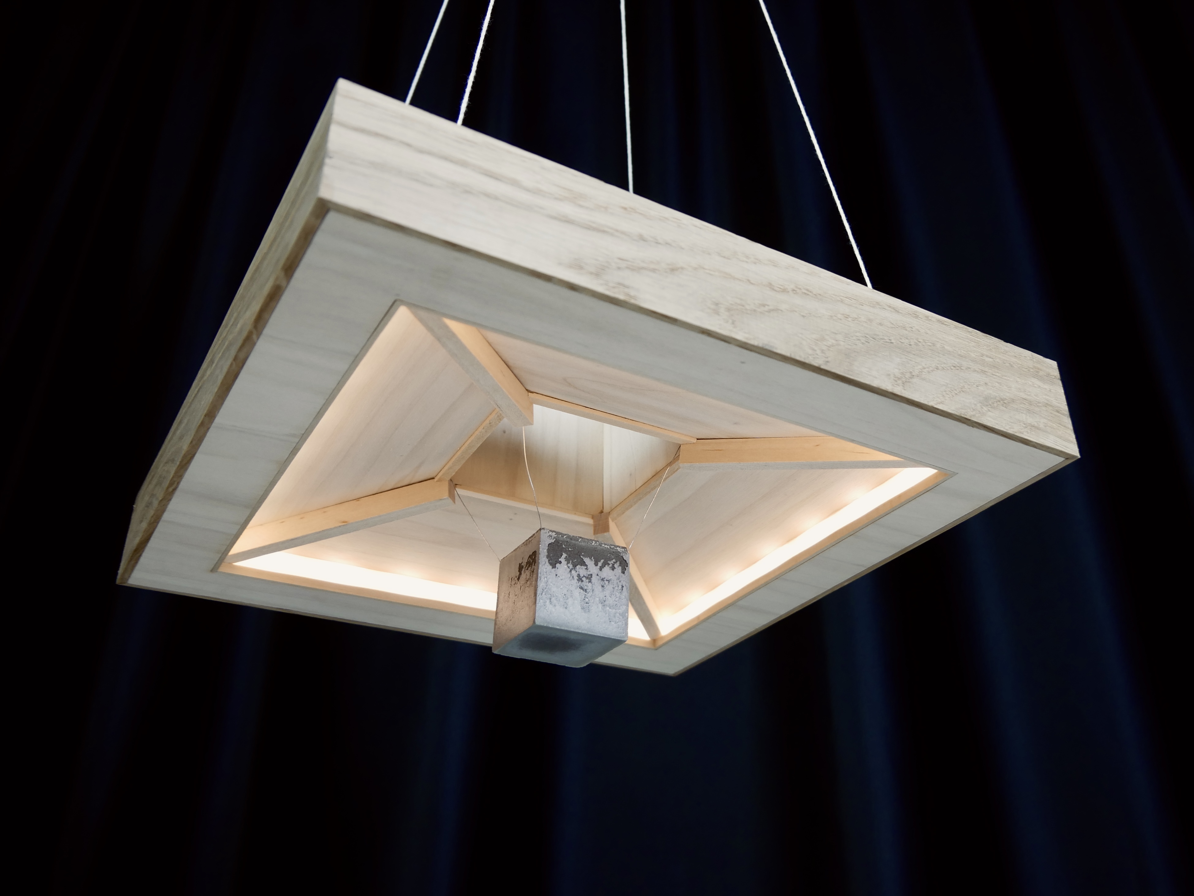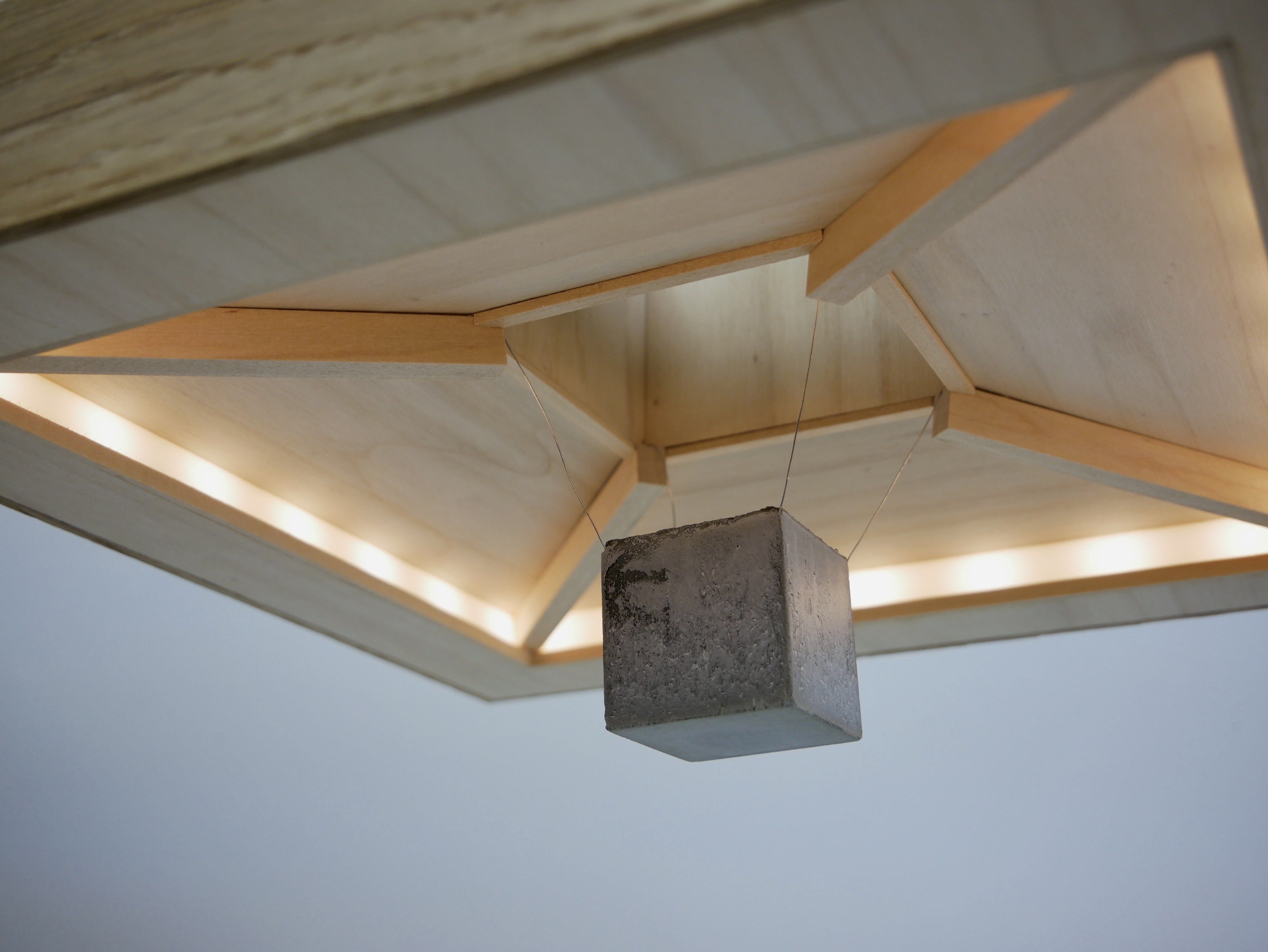 Plywood, oak, concrete, wire, plexi, LED-strip