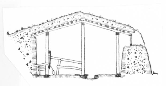Det enda byggnadsmaterial, som funnits i rik mängd på Island, är grästorv. Husen har byggts med väggar och tak av torv. Väggarna har byggts som skalmurar. Torven har lagts i skikt varvad med sten. Mellanrummet mellan två sådana väggar har fyllts med stampad jord och torv. Taktorven bärs upp av åstak. Virket består av drivved. Många olika takkonstruktioner har tillämpats. På Mikligarður har bostadshusen tak, där åsen bärs av dvärgar, som står på tvärbjälkar. Modellen visar ett uthus, där åsarna bärs upp av stolpar på sulor. På stolparna ligger raftar och på dem längsgående käppar, som underlag för torvskikten. Husens livslängd är 20-50 år.