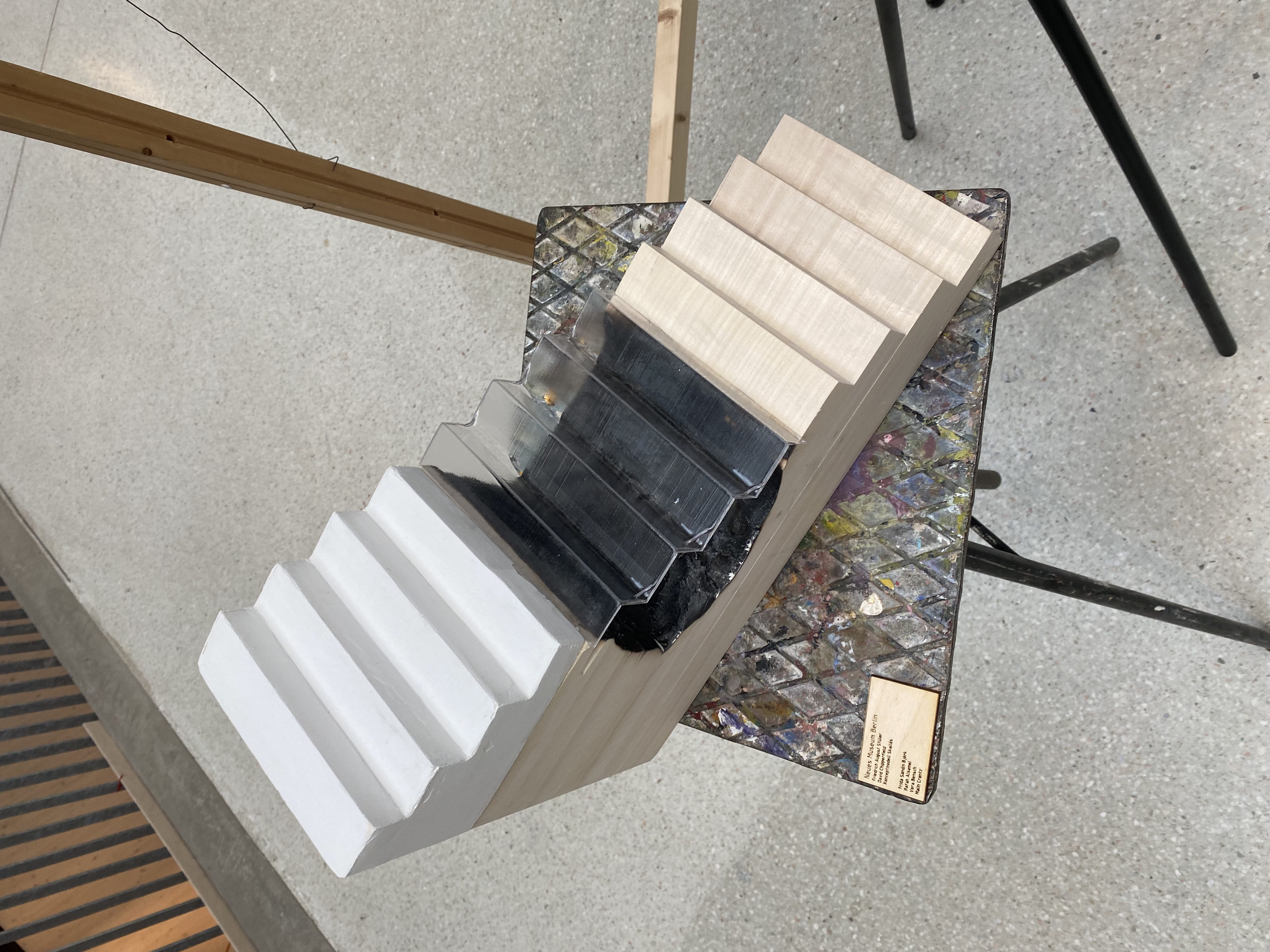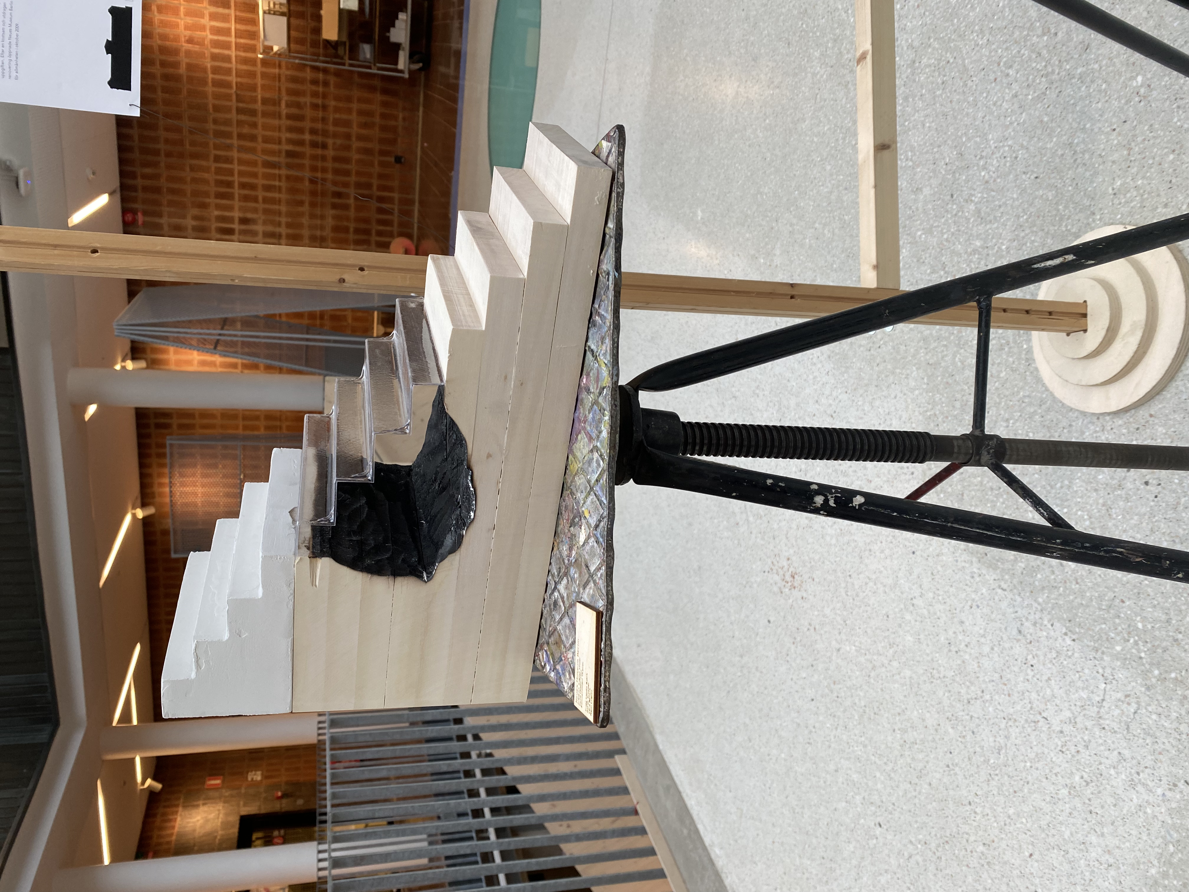 En konceptuell trappa som symboliserar de olika faser som byggnaden genomgått under sin livstid.
