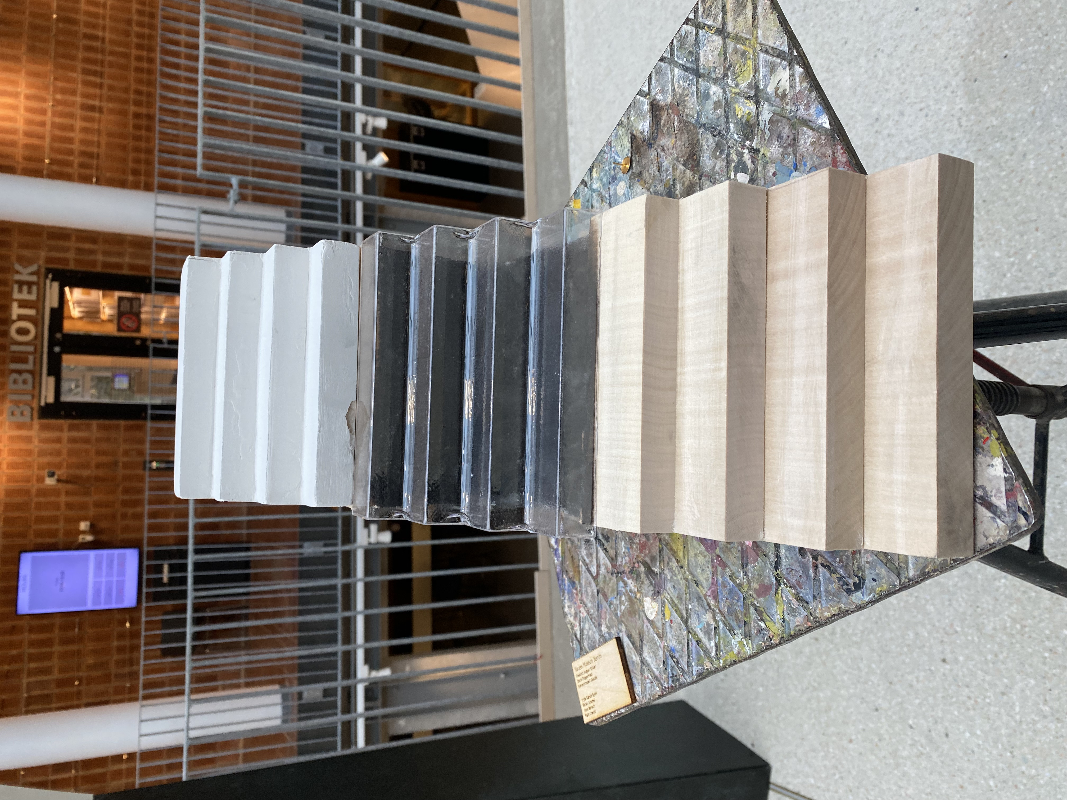 | dc.format.medium | En konceptuell trappa som symboliserar de olika faser som byggnaden genomgått under sin livstid. | sv |