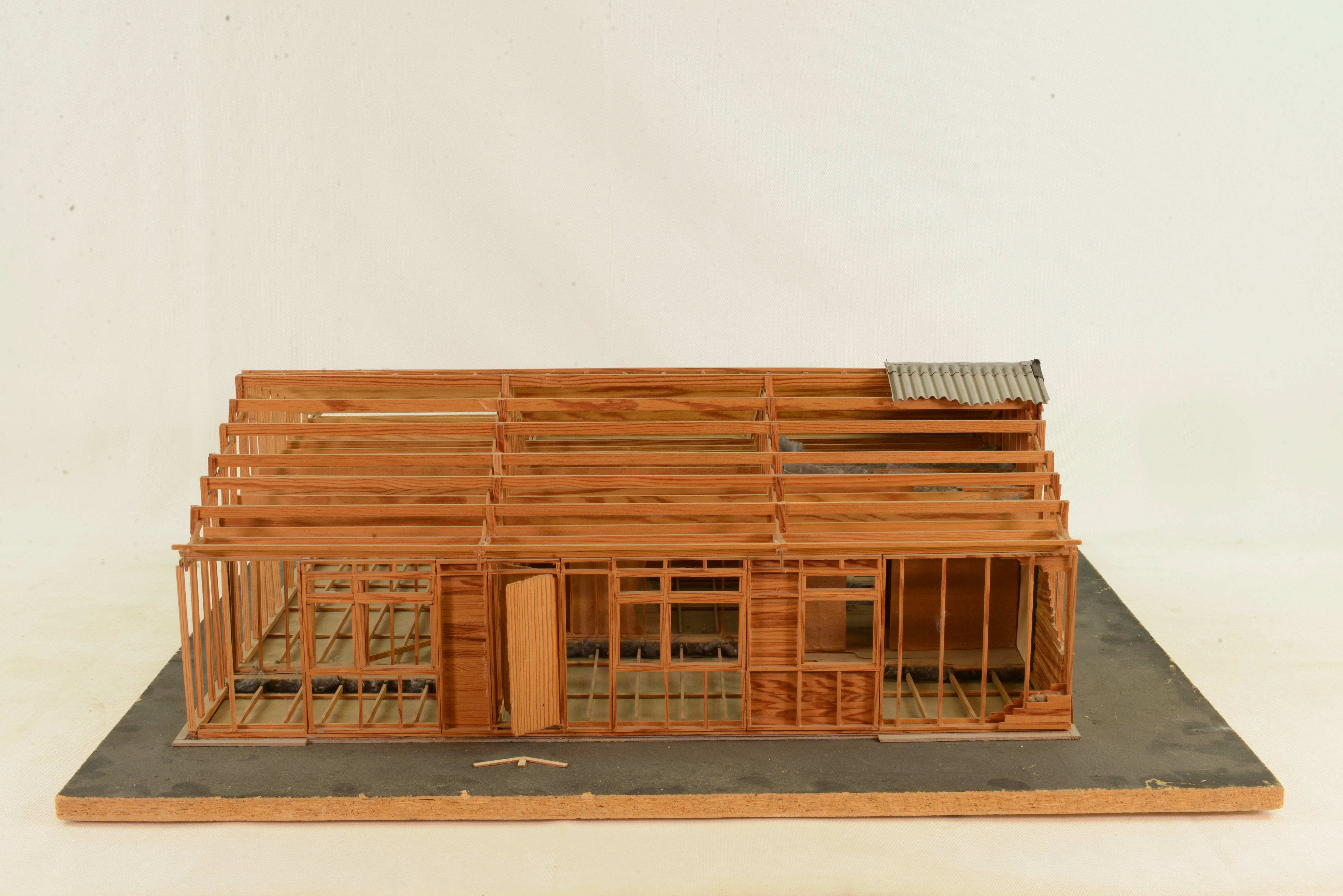 1964 introducerade byggnadsfirman Harry Karlsson i Lund ett enplanshus, som helt färdigställdes på fabrik. Modellen visar en L-formad typ, som skulle lämpa sig för radhus. De 4 m breda husdelarna tillverkades på fem dagar, transporterades till byggnadsplatsen på en specialkonstruerad trailer och monterades ihop och taktäcktes på en dag. Redan på 40-talet hade Vattenfallsstyrelsen utvecklat skivhus (se modell 247) men betydligt smalare, för att klara transporter med lastbil. Lunnahuset kunde pga transportproblemen inte levereras längre bort än 3-5 mil från fabriken i Lund.