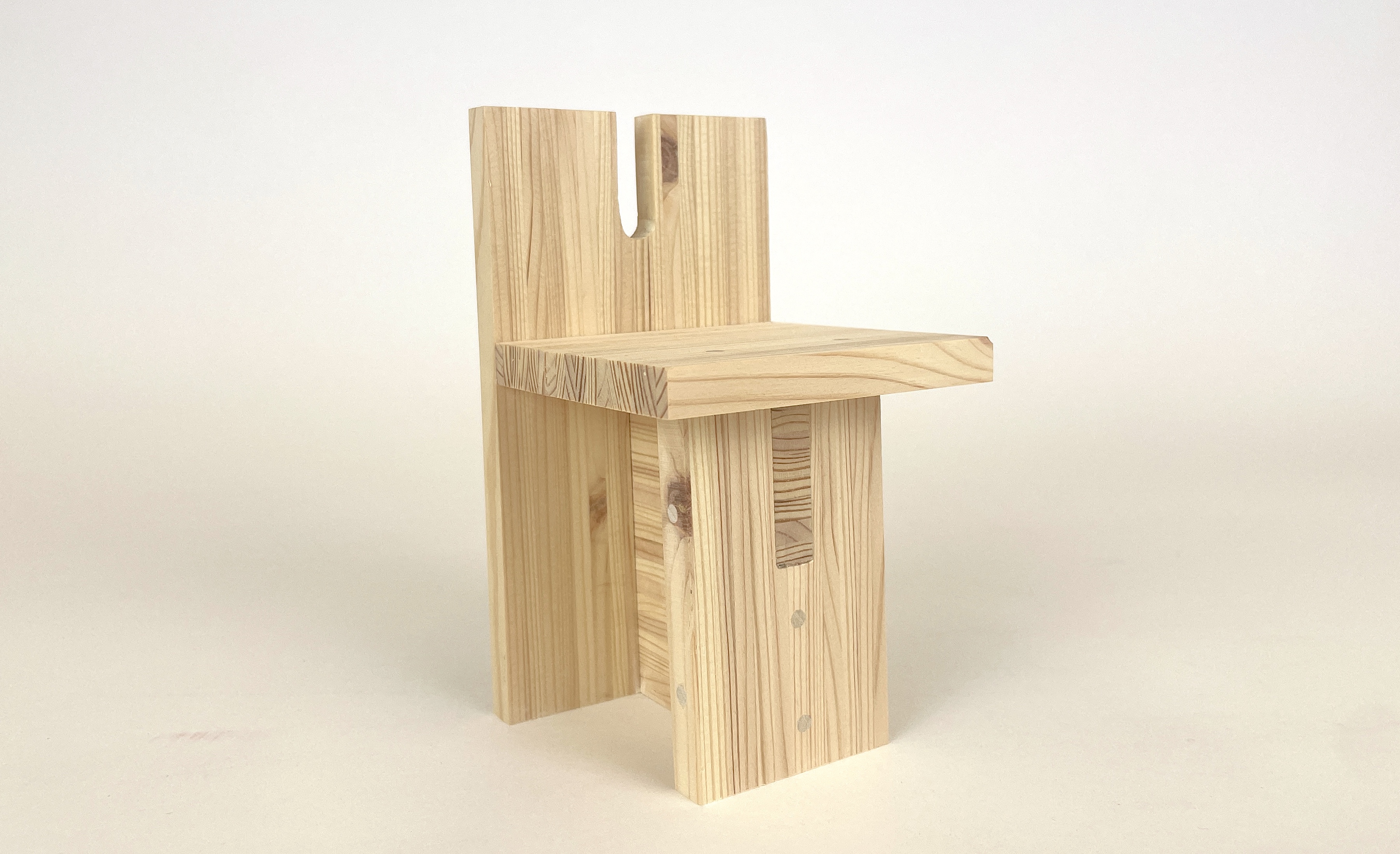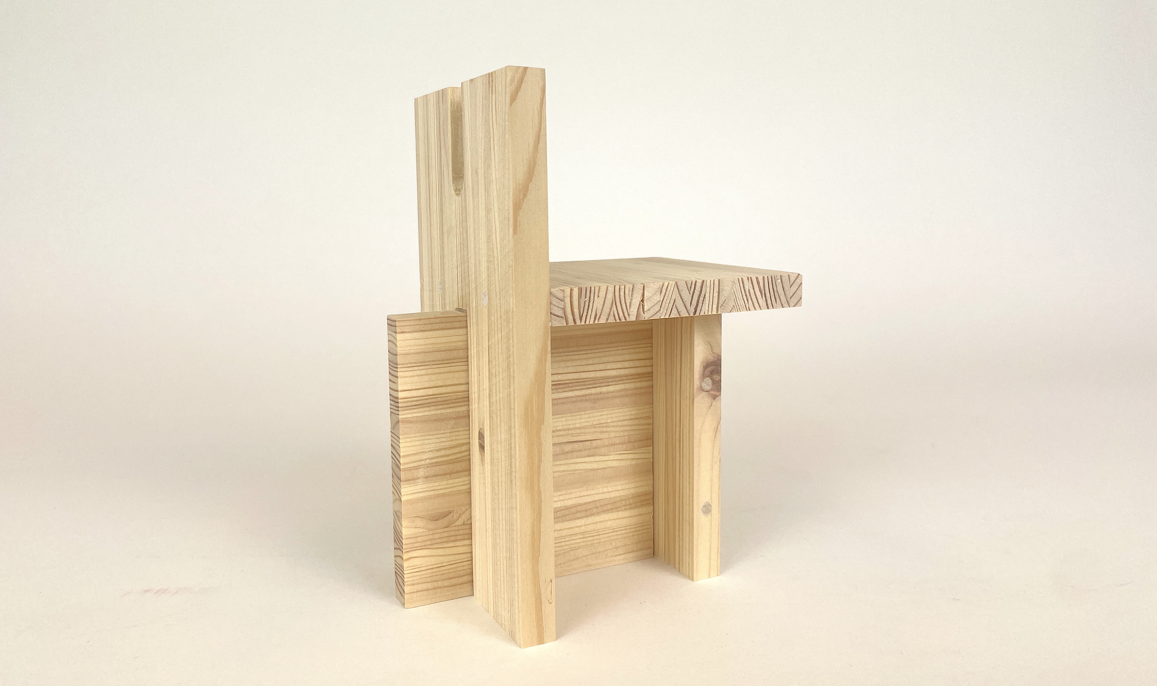 Modellen kompletterar gruppens övriga kollektionen av modeller och skalor genom att bidra med en känsla för centrets inredning och visa på hur en arkitekt kan jobba med helhetstänk. För att kunna visa uppbyggnaden av lameller har vi valt att arbeta med furu i skala 1:5. Detaljer som utmärker stolen så som dess uppbyggnad kommer fram och ger en god förståelse och upplevelse av objektet.