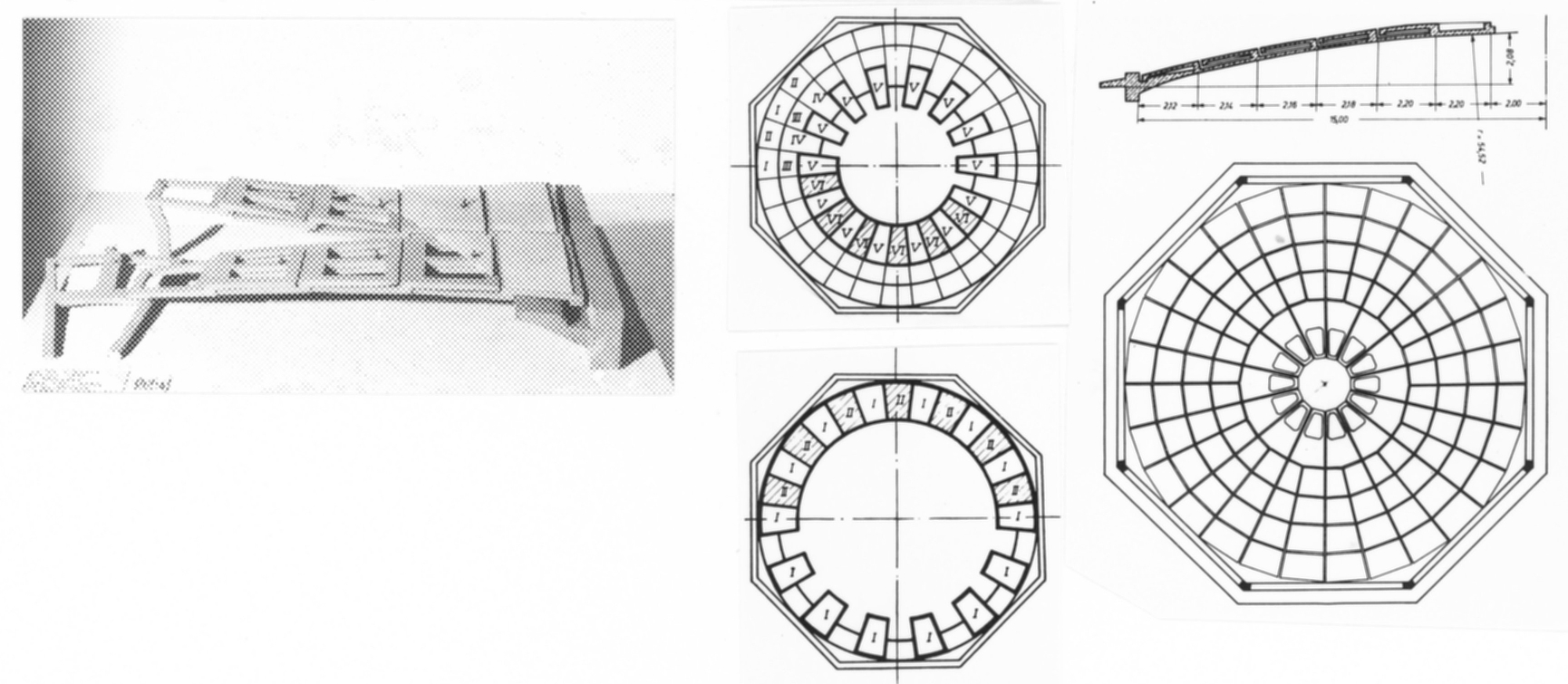 Flera mycket flacka kupoler, som byggdes utan hjälp av ställningar, uppfördes i Sovjetunionen under 1960-talet. Modellen visar kupolen över Leninsporthallen vid Grusiens polytekniska institut (1959). Kupolen är uppbyggd av färdiga element som hakar fast i varandra i fem koncentriska ringar. Varje ring stöder sig på den redan monterade.