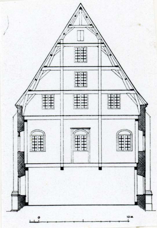 Kronhuset i Göteborg är en stor magasinsbyggnad, byggd 1643-53. Stora rum i slott, rådhus och andra representationsbyggen krävde stora tak, och enkla bjälklag var inte alltid tillräckliga. I Kronhuset hänger det nedersta bjälklaget i takstolen, för att ge tillräckligt stöd åt det stora och kraftigt belastade golvet (se även modell 203). Den undre våningen fick ett stort, representativt rum, som 1659-60 användes som rikssal.