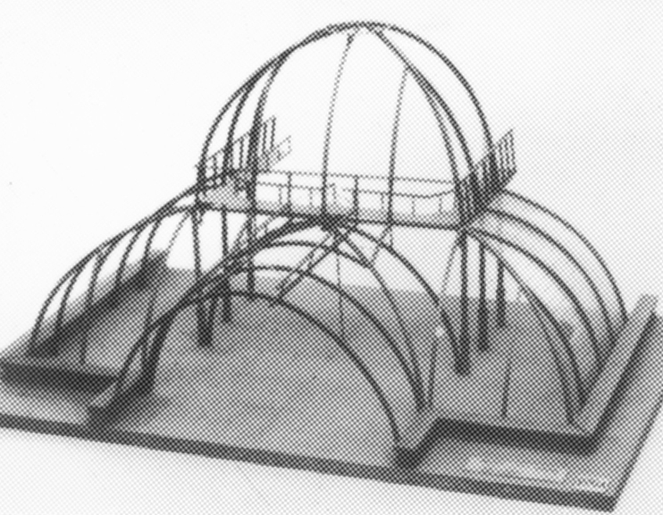 Modellen visar palmhuset i Kew Gardens i London. Det ritades av Decimus Burton och Richard Turner och uppfördes 1844-48. Det är byggt av glas i järnspröjsar med en stomme av järnkolonner och bågar. I 1800-talets stora palmhus kom järnbyggnadstekniken att utvecklas. Växthusens former studerades också ingående med avseende på ljusinfall och värmelagring. De kupiga formerna var utmärkande för den engelska glashustraditionen.