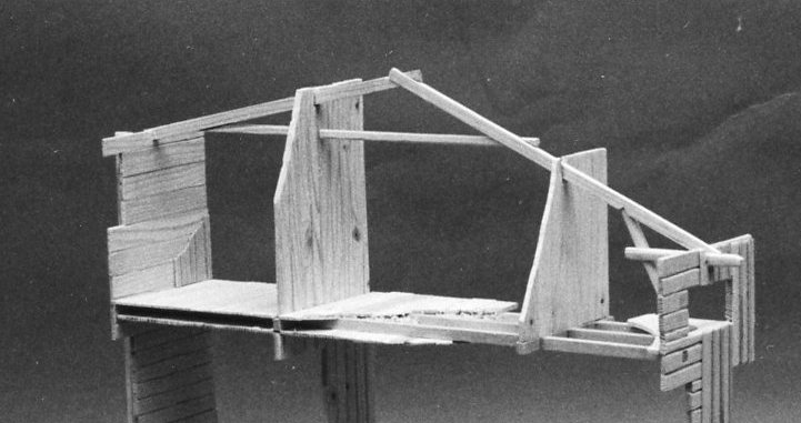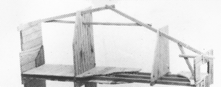 Modellen visar en takstol med takfot och ett litet mezzaninfönster till vinden på Järnbärarhuset. Takstolarna är av s k svensk typ, men glest placerade och därför försedda med åsar på vilka ligger kraftiga lockbräder (vedtaksliknande) i takfallens riktning. Taksprånget bärs konstruktivt upp av en utspringande tass, som på utsidan är kompletterat med konsoler.
