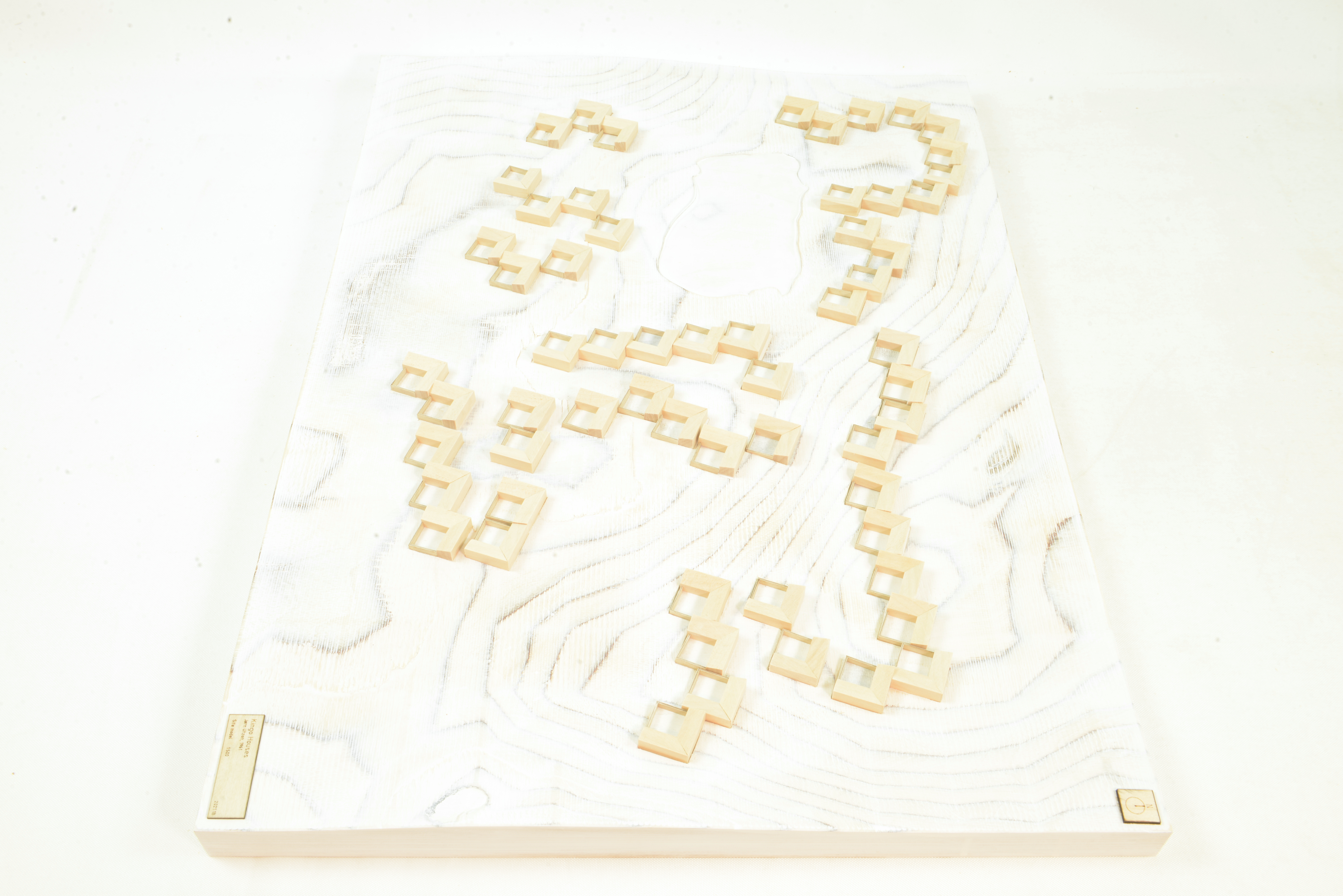 Landskap CNC-fräst plywood, vitlaserat, hus lind
