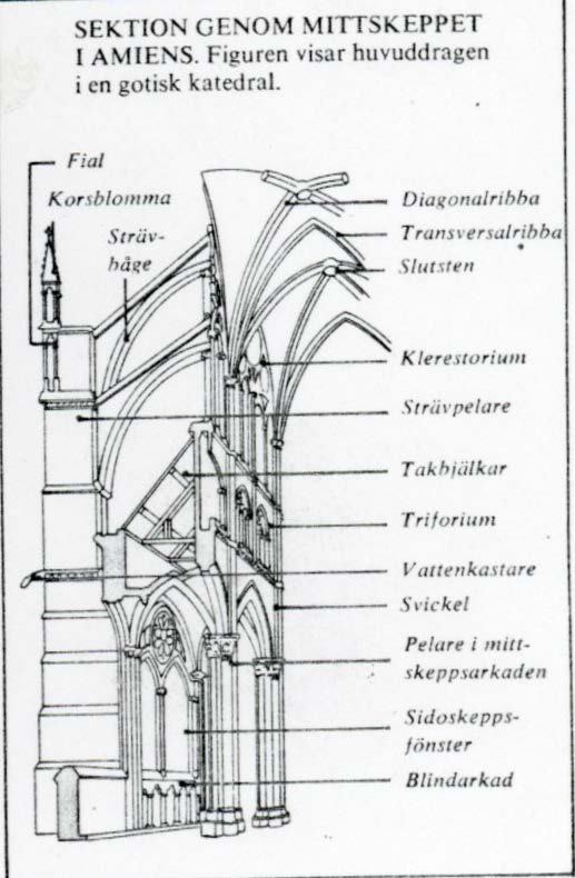 | dc.description.abstract | Katedralen i Amiens, byggd 1220-1270, är en sen byggnad i den franska gotiken. Det 42 m höga och 14 m breda mittskeppet ger rummet en stark riktning uppåt. De smala arkaderna och dess enhetliga pelare ger samtidigt rummet en rörelse åt öster och koret. I tvärskepps- och korslut har väggen bakom triforiet försetts med fönster, varigenom enhetligheten ökat ytterligare. | sv |