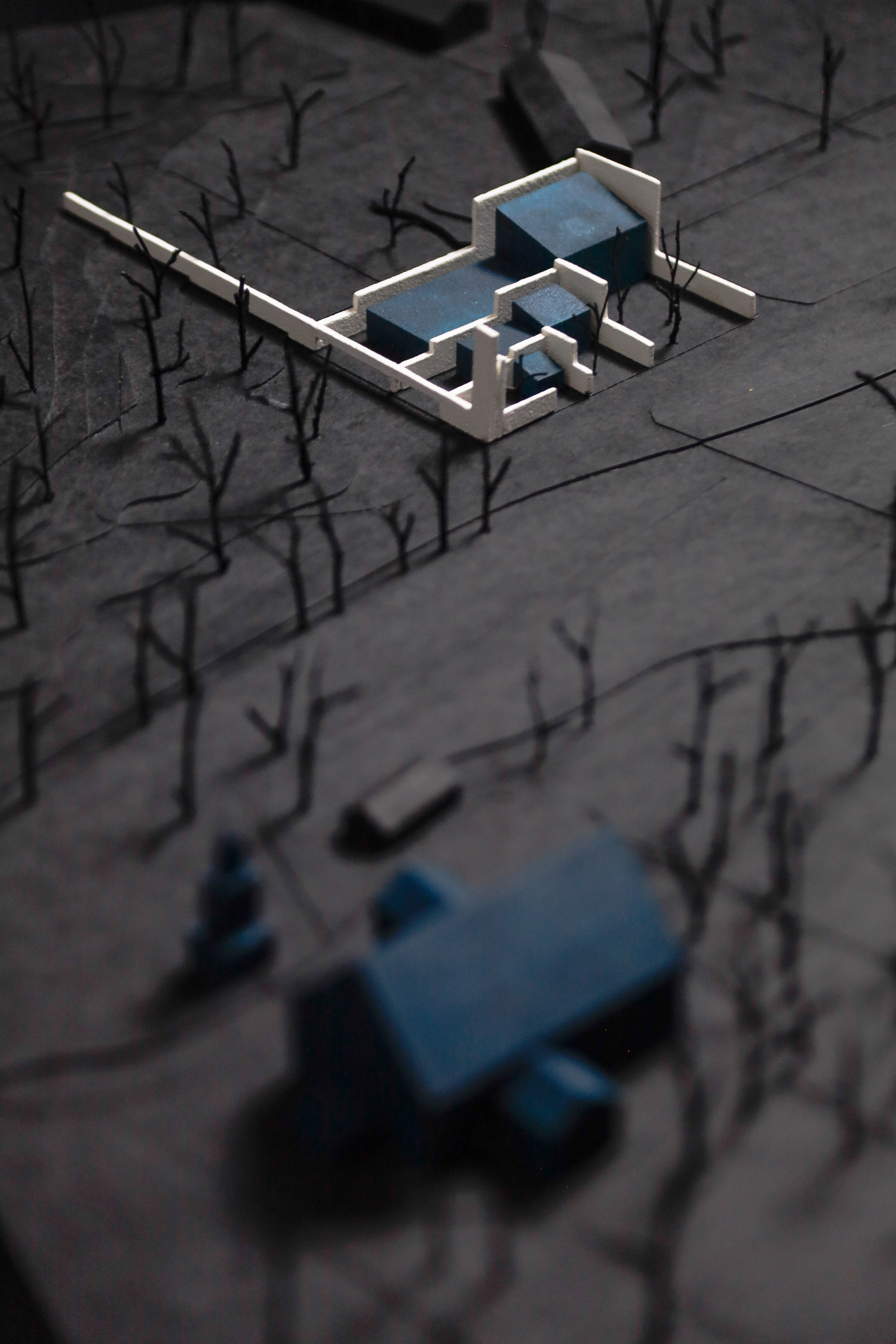 This site model allows viewers to appreciate the way the chapel was designed to blend in with its environment, as well as the use of copper to highlight the chapel’s features. Built on a hillside in Vantaa the competition for the project was open to all architects, and was arranged by professor of architecture and urban planning at the Helsinki University of Technology Raimo Nikkanen, to provide an extension of the existing mediaeval church. The building was constructed in the form of a long narrow rectangle, which allows for maximum light and views through the church. It has three entrances, for visitors and those attending services.The chapel links disparate elements in the surroundings without appearing as a distinct building mass, leaving the old mediaeval stone church with its patinated roof and bellcote to dominate the village milieu.