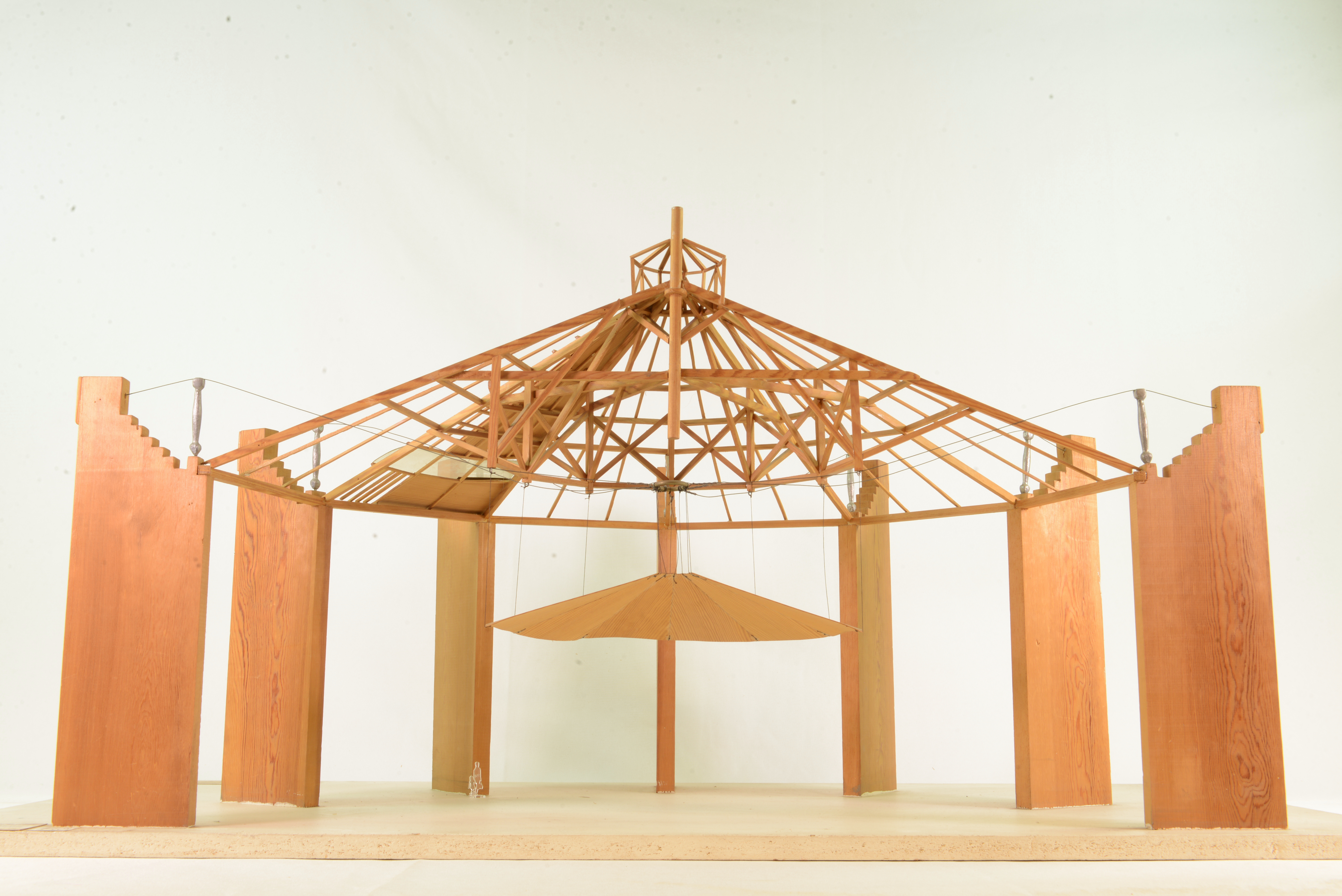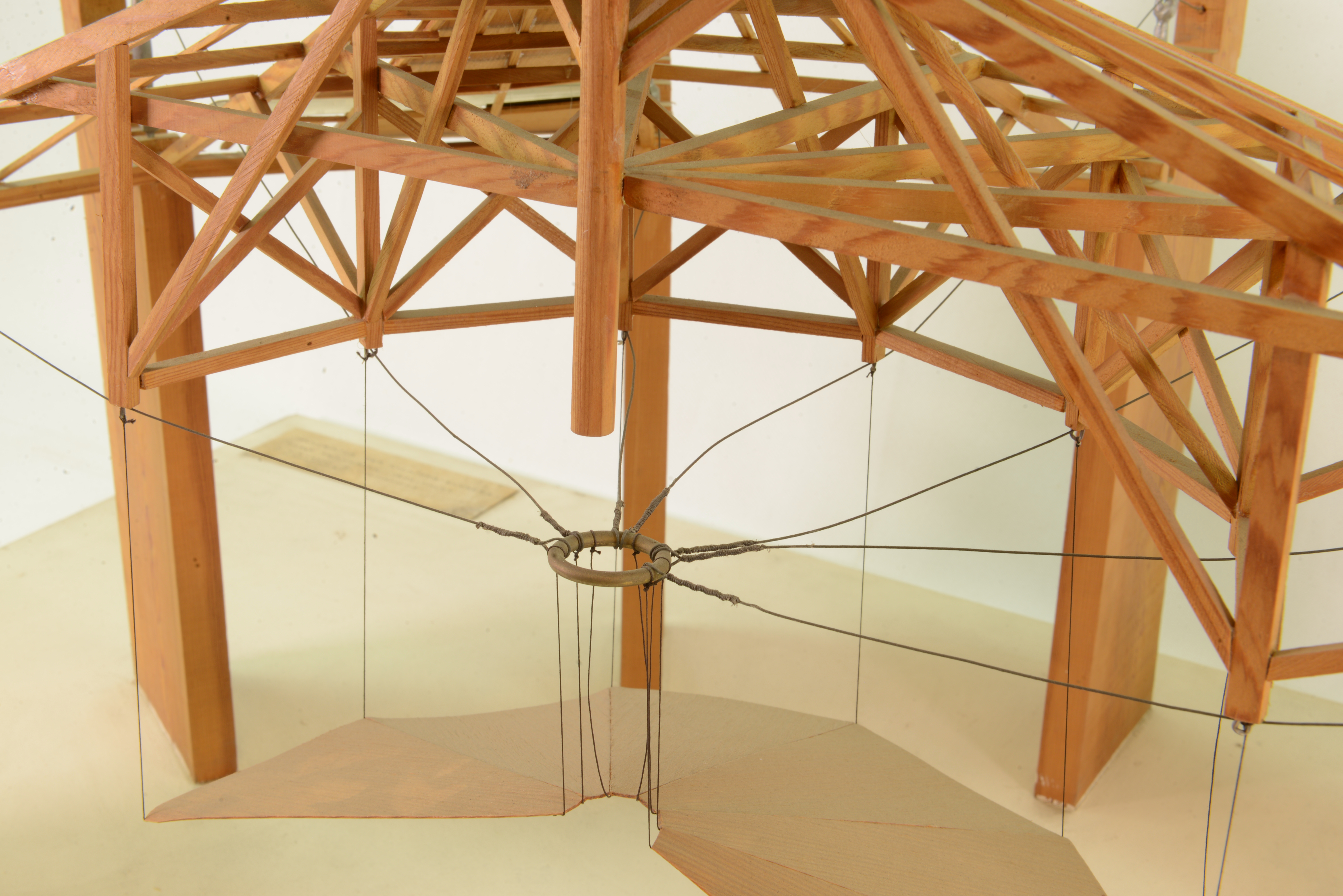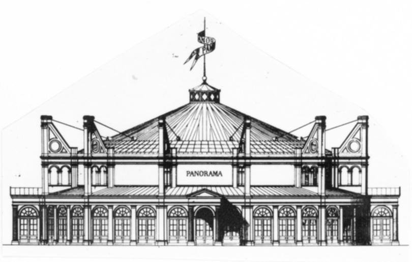 Modellen visar panoramabyggnaden Panorama des Champs Elysées i Paris. Det invändiga taket hänger i stållinor, som är förankrade i kraftiga murpelare runt byggnaden.