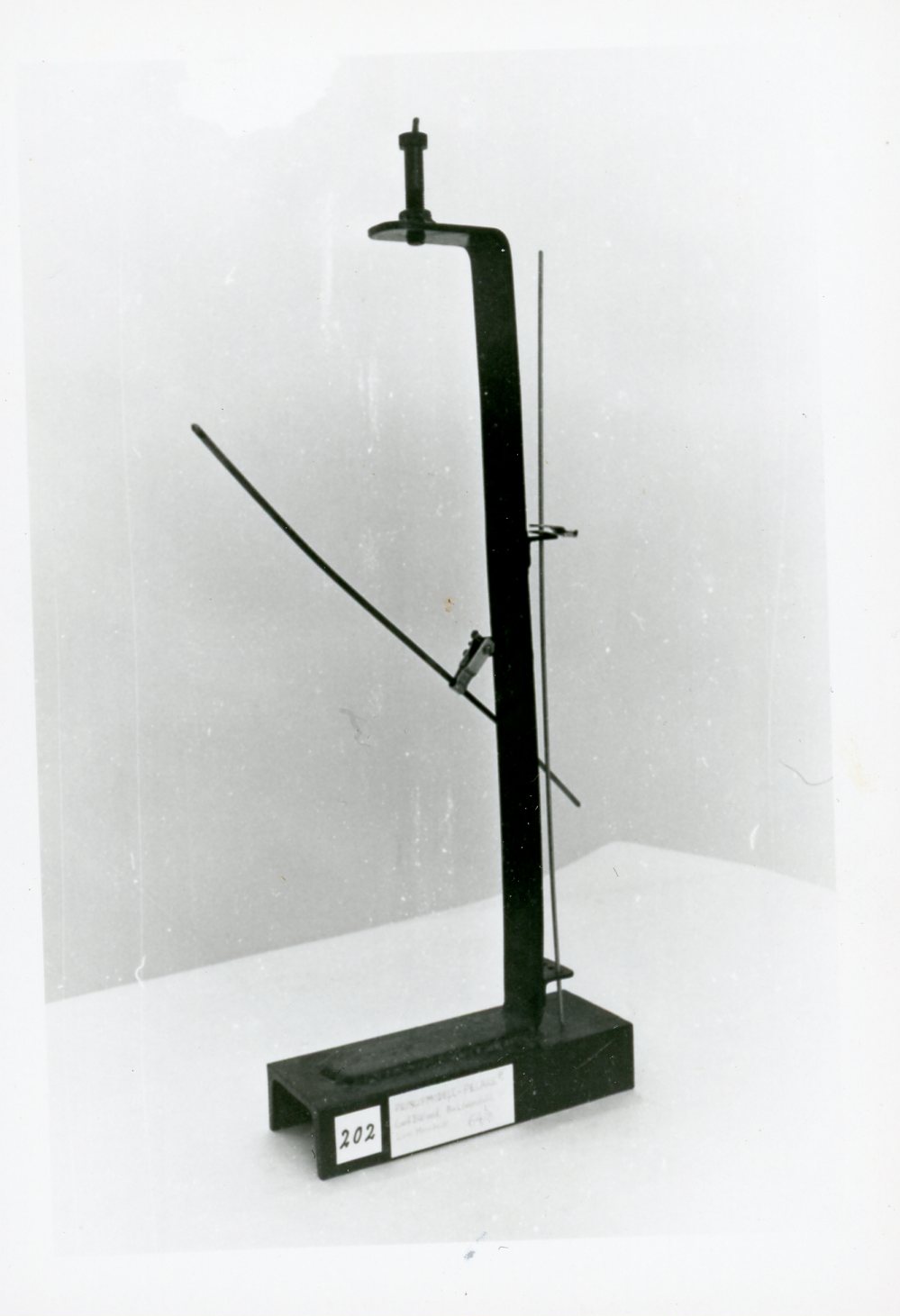 Pelaren, i form av en stång av trä eller mässing, kan i inspänt laäge utsättas för vertikalt tryck med hjälp av en skruv, och olika deformeringsfall kan studeras.