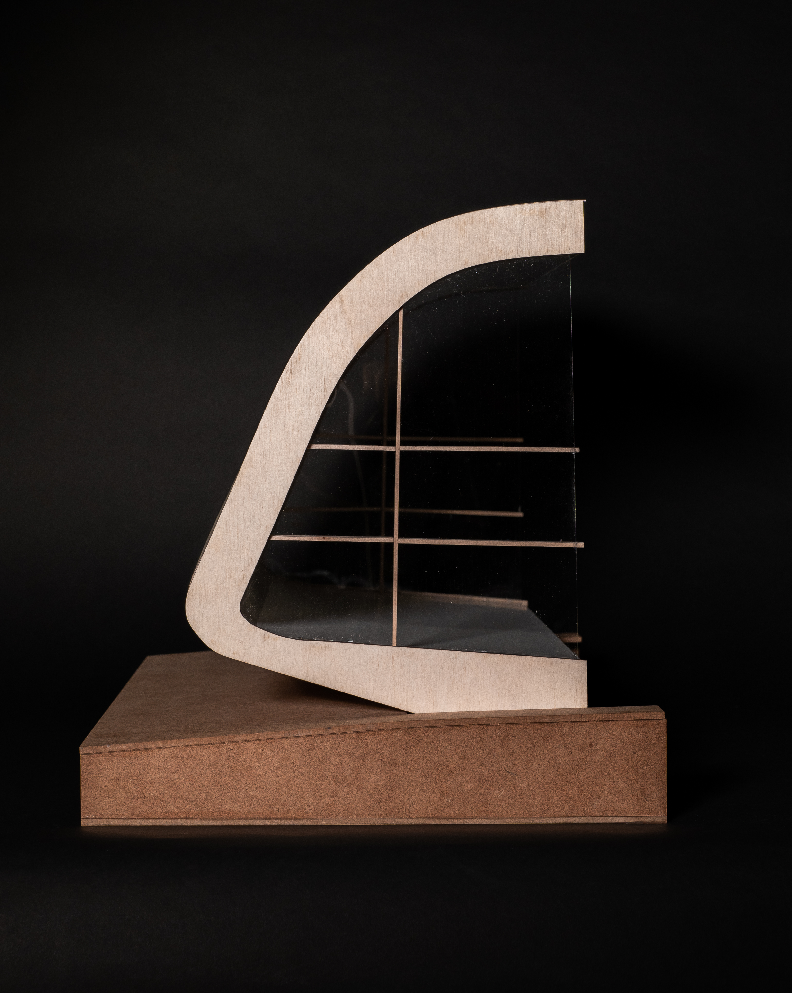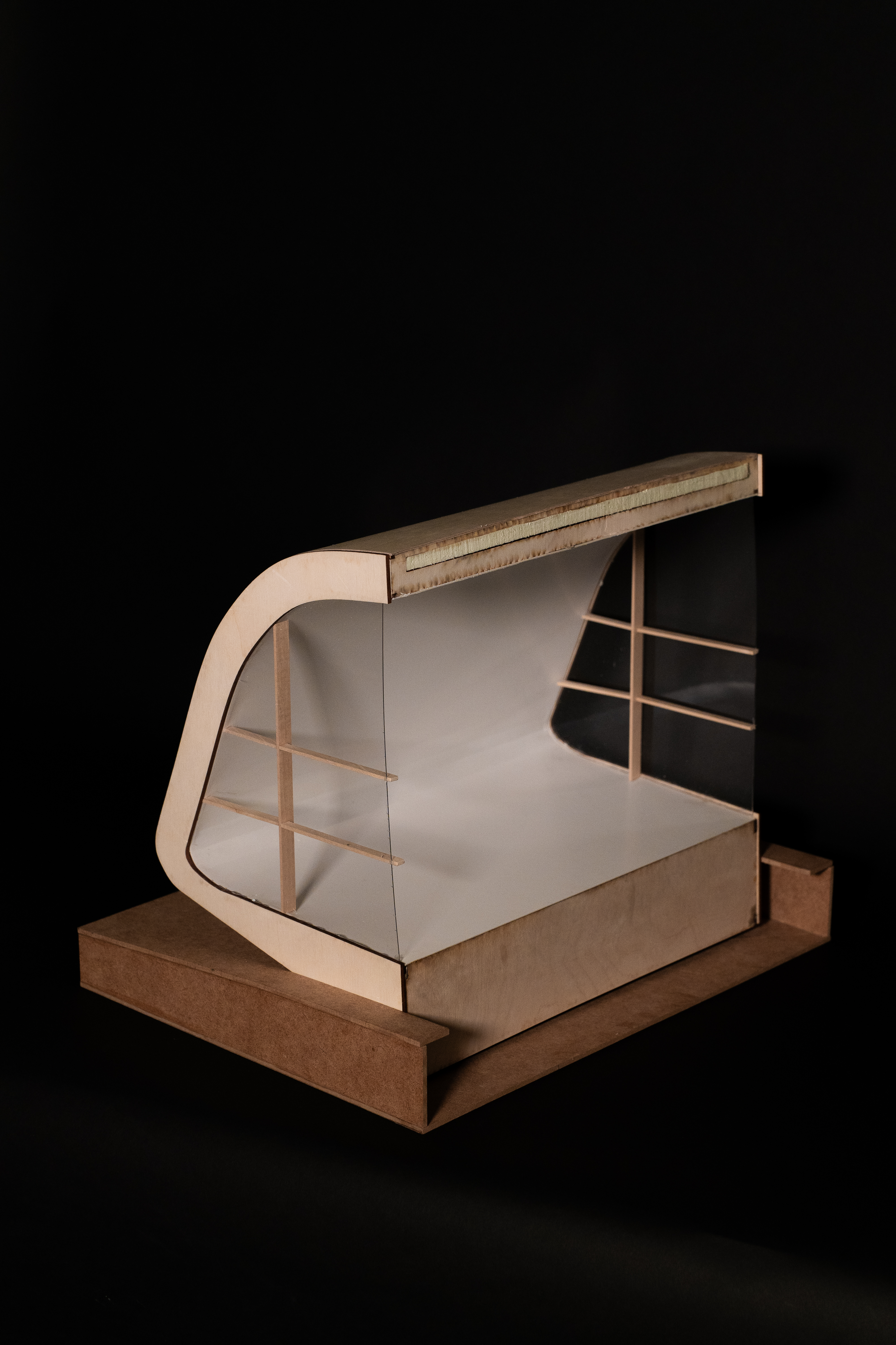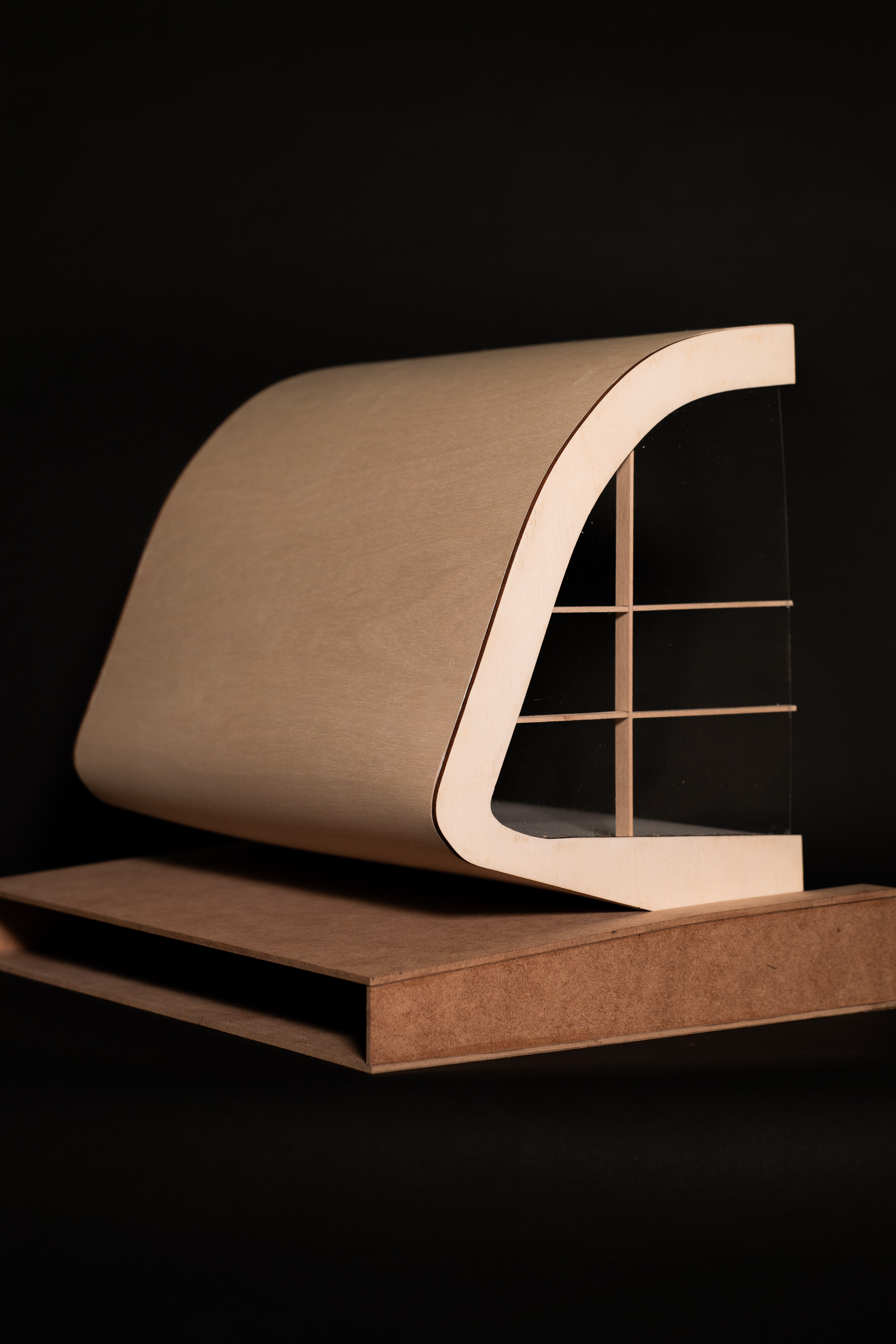 Material: plywood, vit papp, mdf, akrylplast Teknik: laserskuret, handskuret, samanfogat med lim