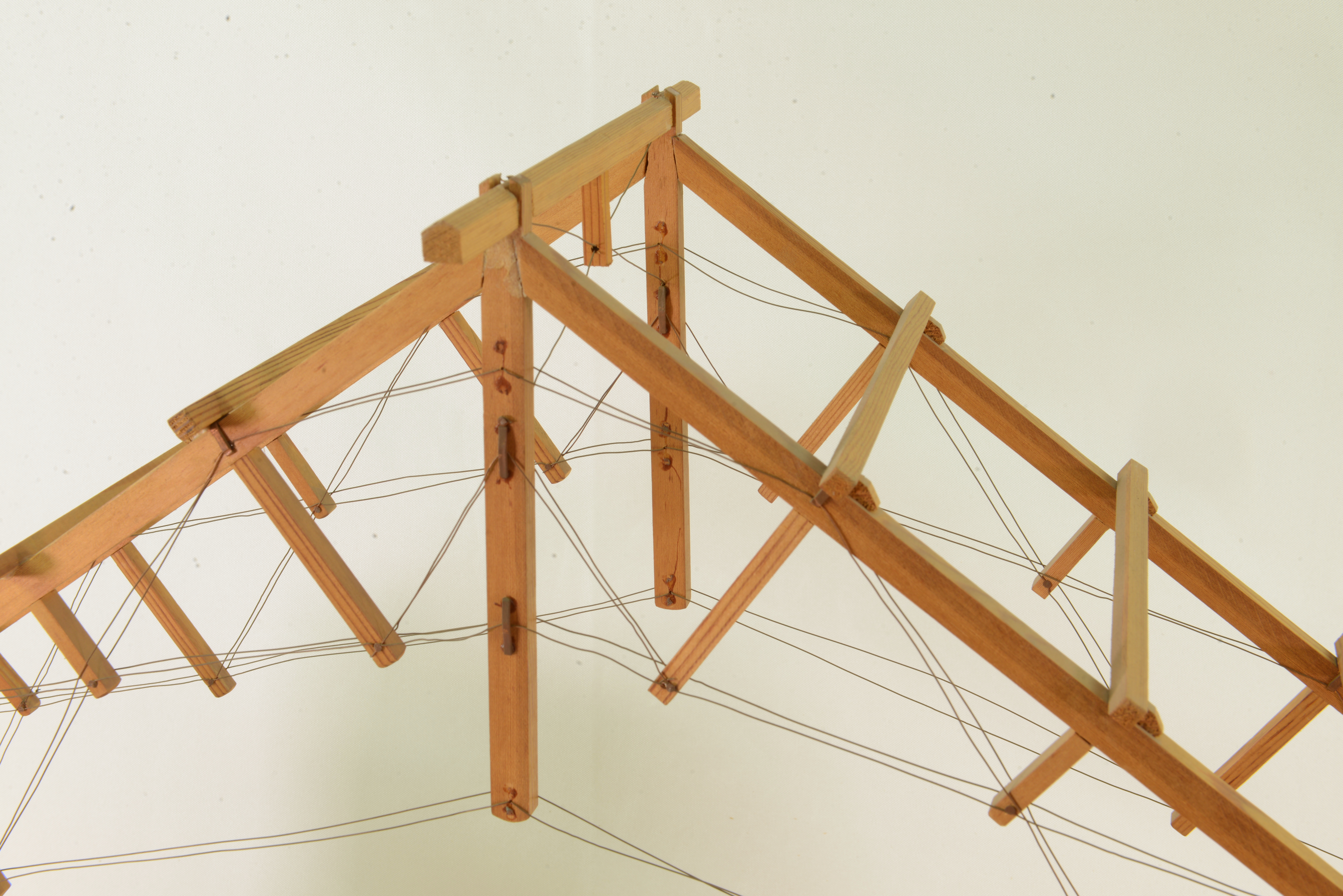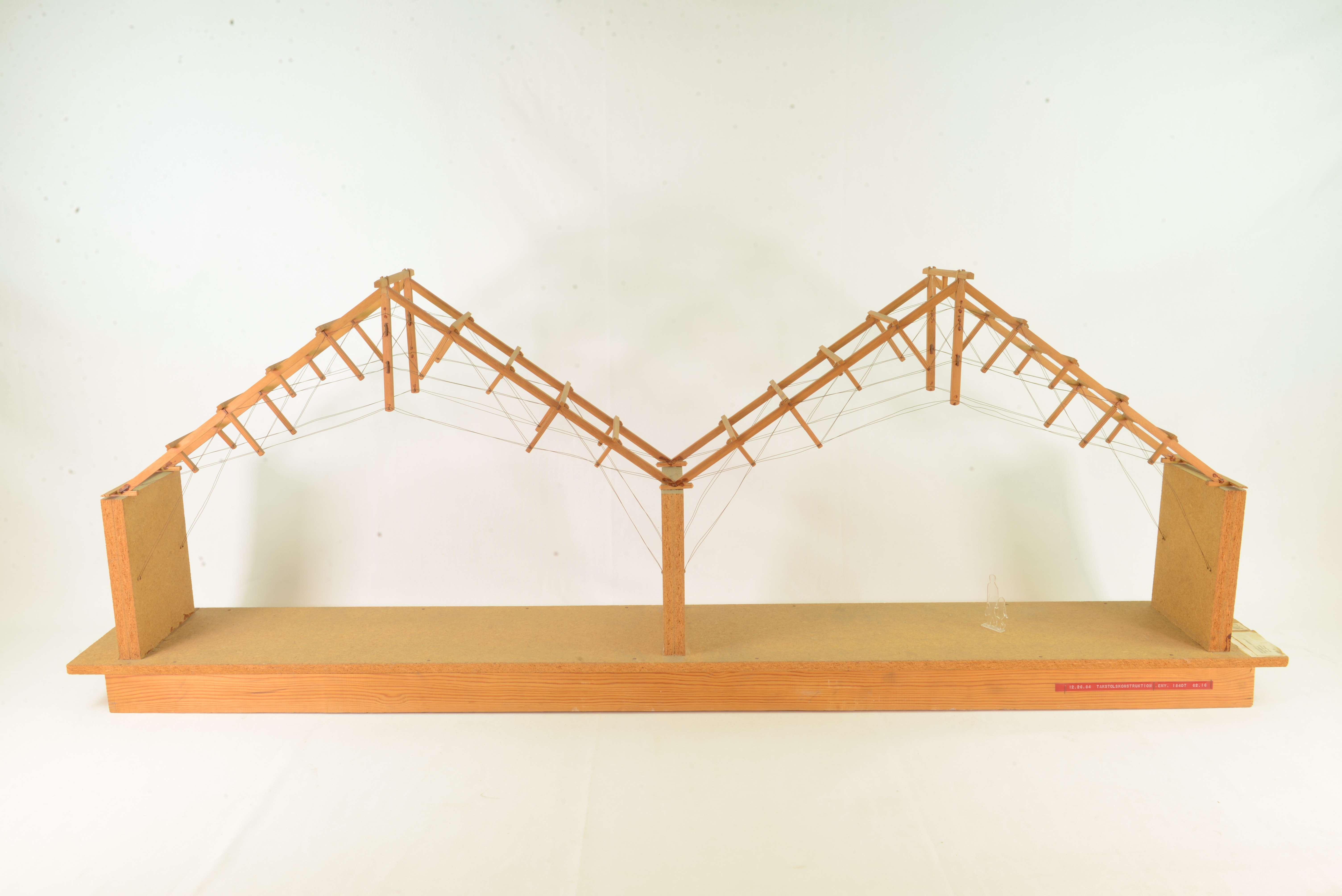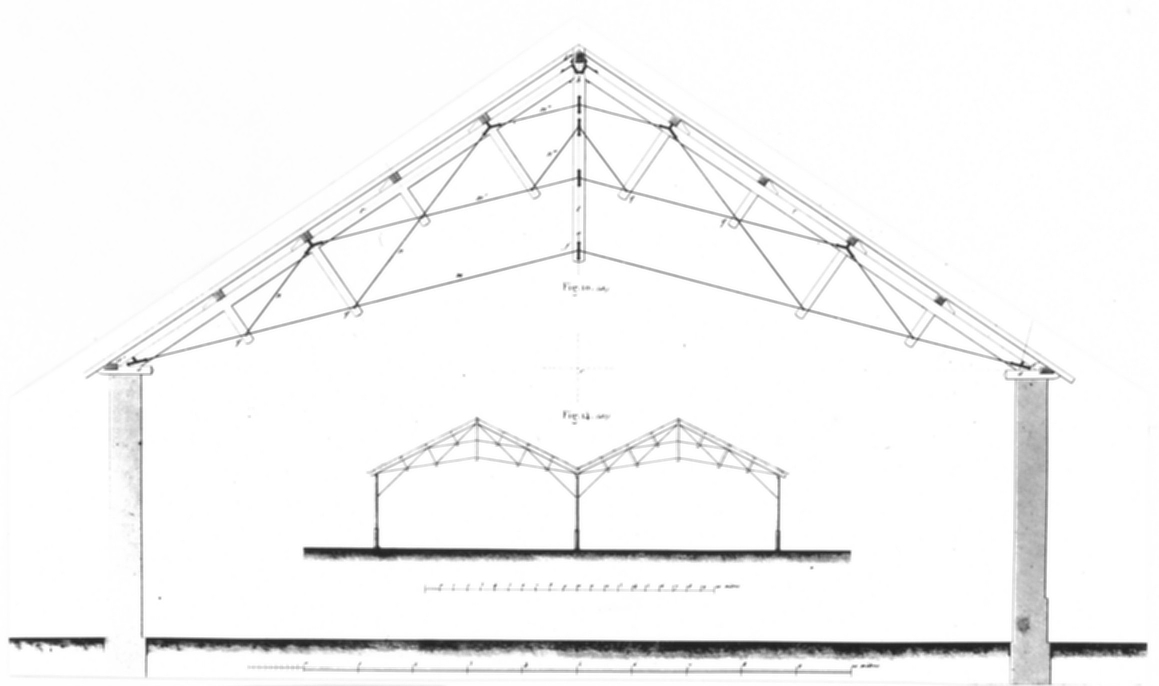 Modellen visar takstolarna i valsverket i Romilly-sur-Andelle byggt 1837. Konstruktören hette Ferry. Han använde sig av Polonceaus system och utvecklade det med fler stöd och bindstag. Se modellerna 258 och 296.