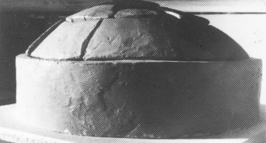 Modellen visar principen för en kupol med slutsten. Tryckkrafterna förutsätts kunna tas upp i cylindern.
