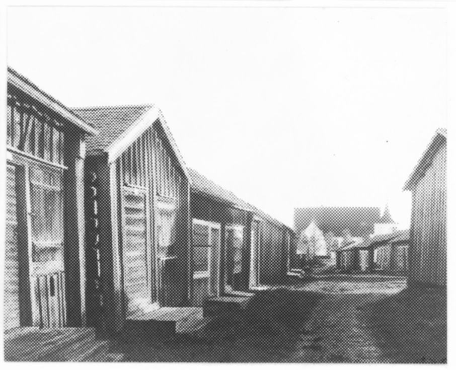Modellen visar ett parti av Lövångers kyrkstad. Stugorna ligger med ingångarna mot varandra i rader utefter gator. Bakom stugraderna ligger stallen med ingångsgaveln vänd mot gatan. De flesta stugorna delas av två eller fler familjer. Stuga och tillhörande stall ligger sällan tillsammans och de olika byarna finns representerade i alla kvarter. Husen har betraktats som lösöre och ärvts och sålts därefter. Marken var prästgårdens. Husen byggdes oftast upp i hembyn för att nedmonterade transporteras till kyrkstaden och sättas upp igen. Modellen har i 1986 års katalog nr 238 B/b.