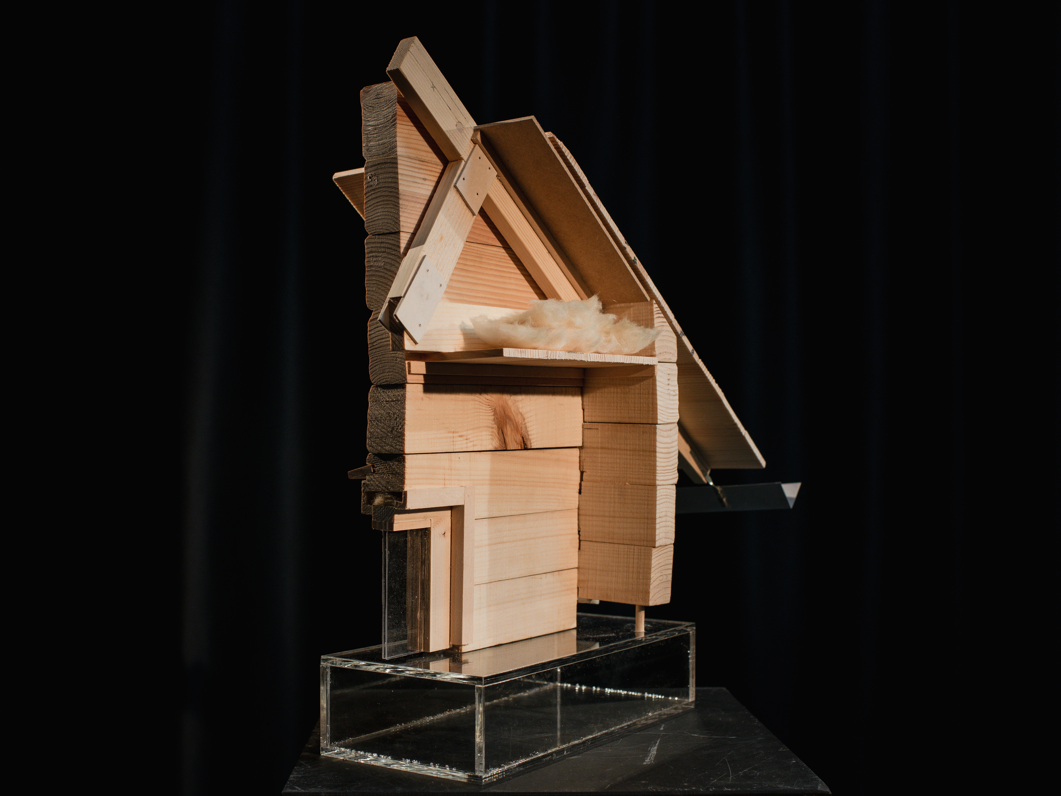 Situated atop a steep site amidst the Swedish countryside, northwest of Karlsborg in Västergötland, the Höghult house offers breathtaking views of surrounding scenery. The building covers an area of 85 sqm and comprises two equally sized volumes—a closed timber section with sauna and bedroom, and an open timber framing area. Emphasizing simplicity and clarity, the house is entirely crafted from wood using traditional techniques, using no nails, nor screws. Tadelakt surfaces in the bathroom add contrast to the wooden aesthetic. Though seemingly simple, the construction incorporates advanced details, such as innovative glass mounting methods. While demanding expertise, maintenance is straightforward, with damaged wood easily replaced. The blend of tradition and contemporary modern architecture creates a harmonious retreat deeply connected to its surroundings.
