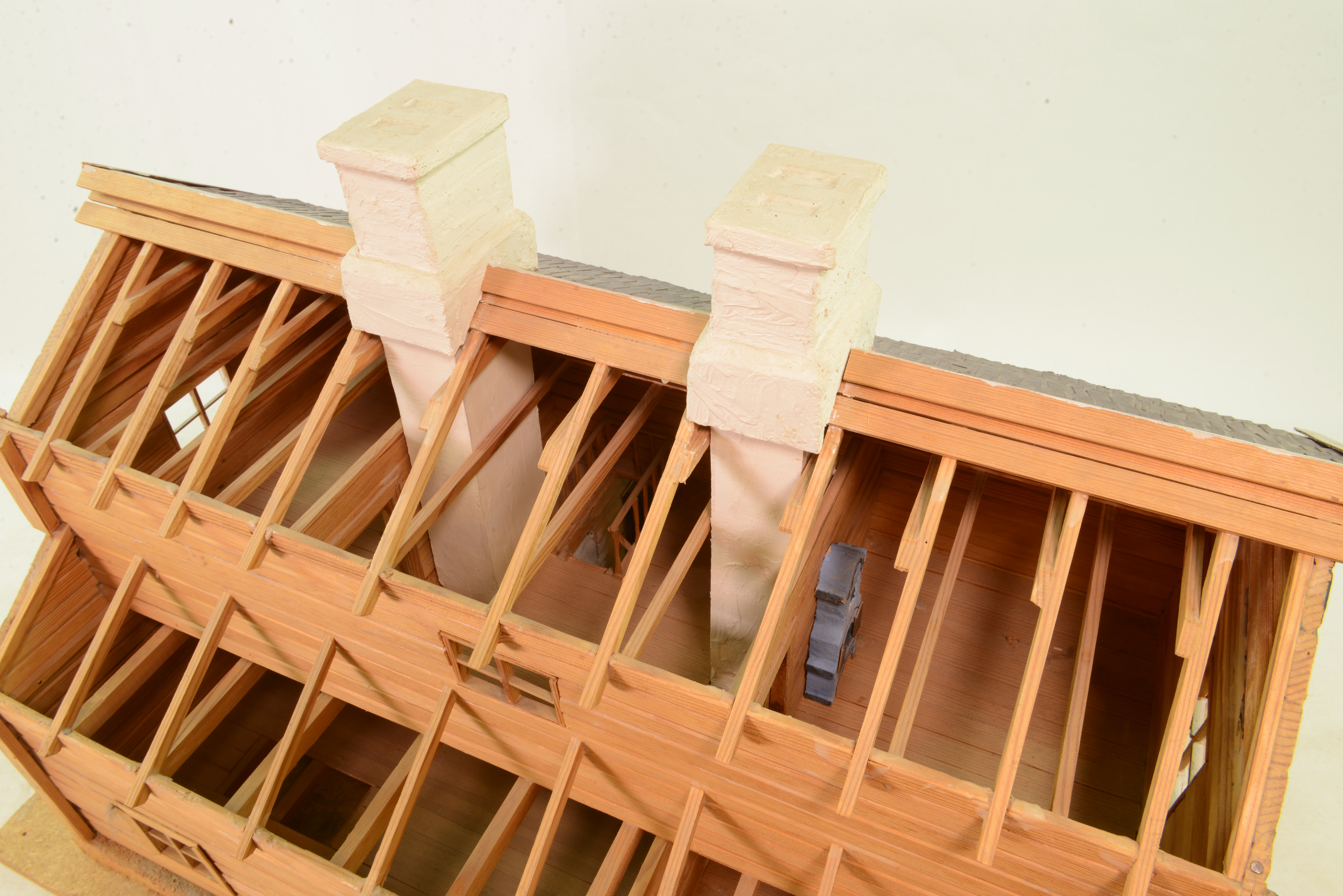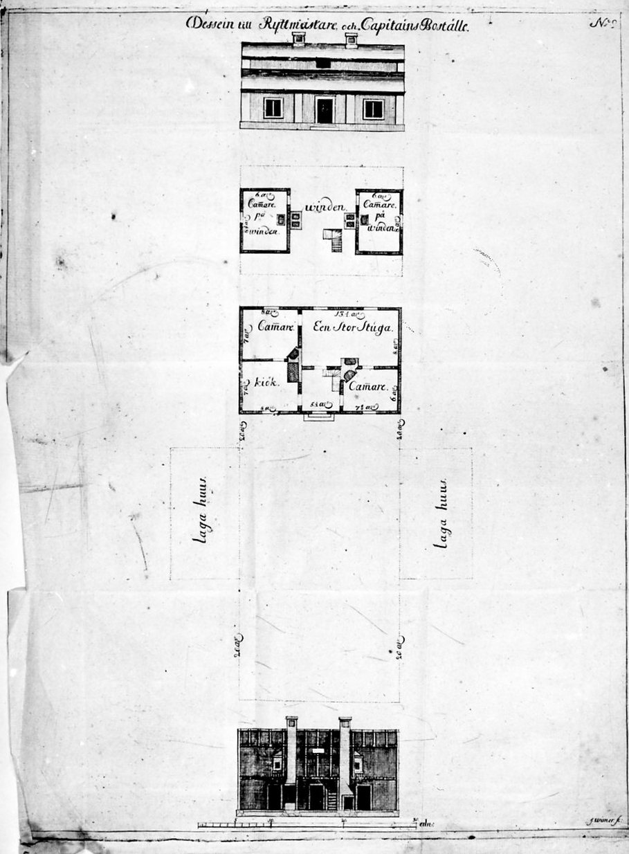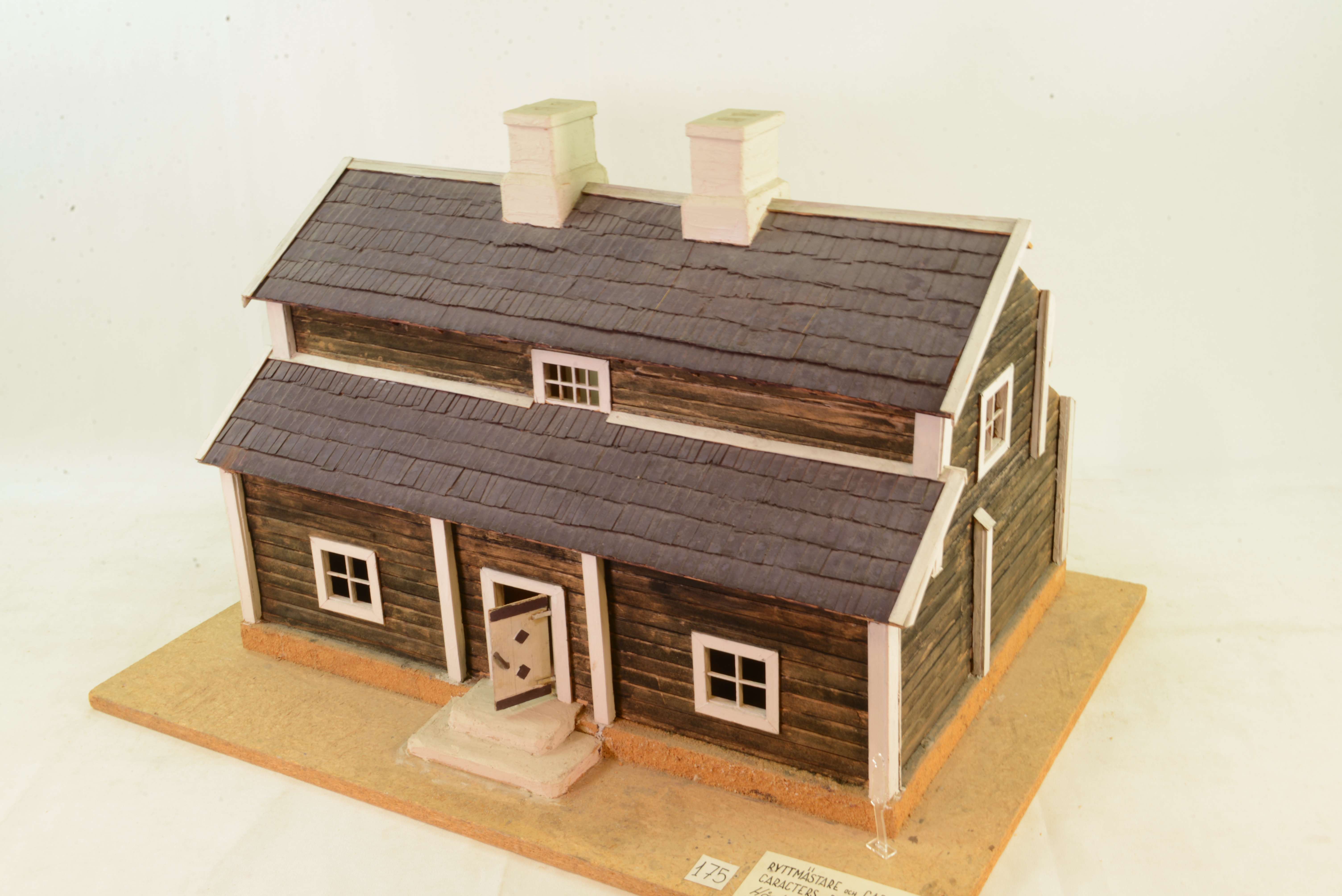 Boställena för officerarna under indelningsverket byggdes efter typritningar, som reglerade storlek och utformning med avseende på officerens militära rang. Modellen visar en kaptensbostad efter Hårlemans typritning från 1731.