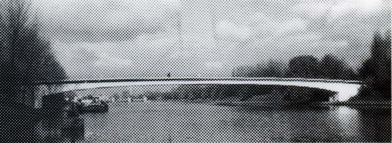 Kravet var en bro utan mellanstöd i vattnet och de flacka strändrena innebar, att en båg- eller rambro inte var möjlig att bygga. Bron är därför utförd som en kontinuerlig balk med över- och underplatta, med ett mittspann på 96 m och två sidospann på 19 m. Genom att betongen är förspänd, har konstruktionen blivit slankare och tillräckligt lätt, för att spänna över den breda kanalen. Bron är en av de första långa förspända betongBroara, byggd 1950.