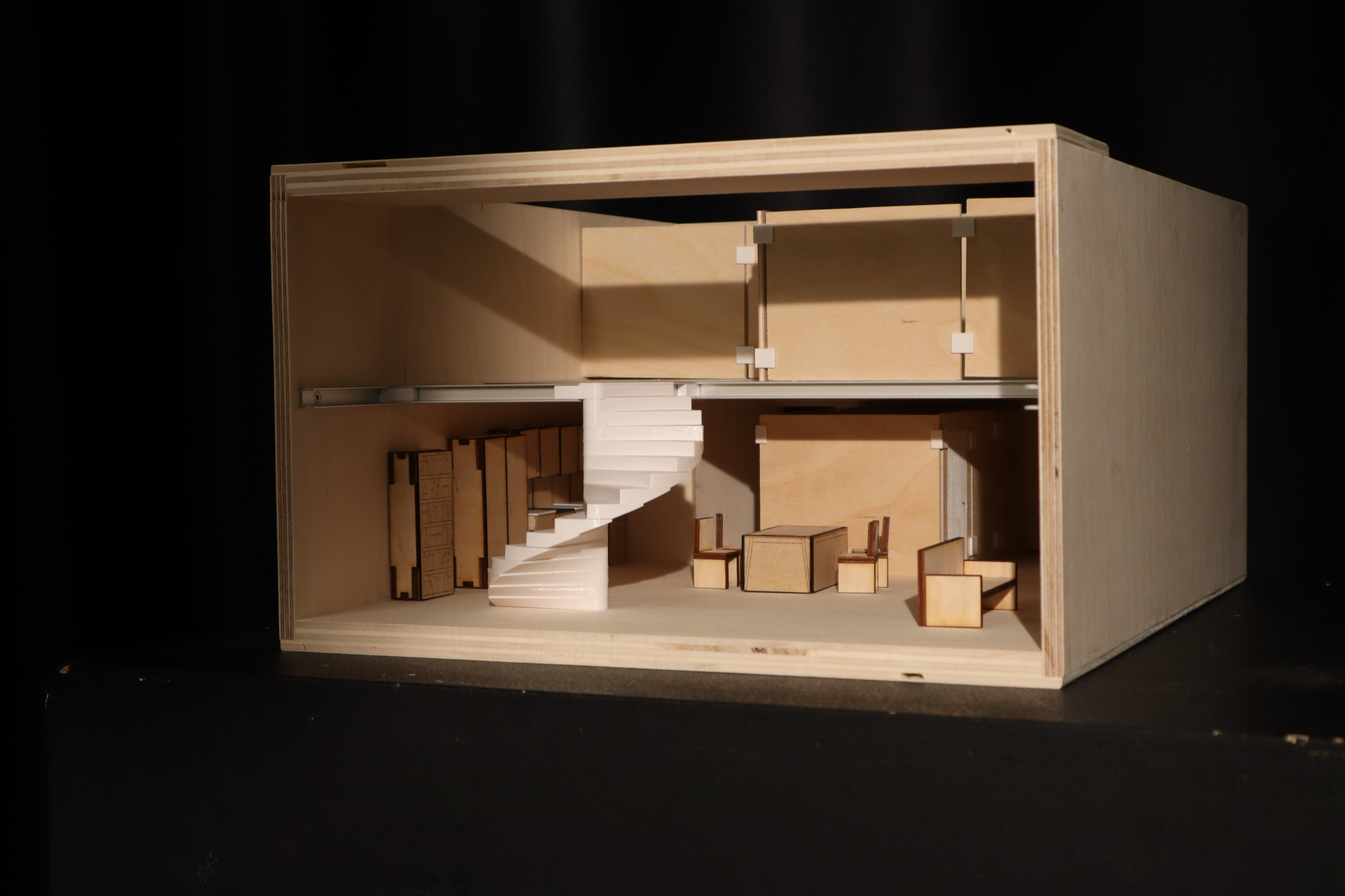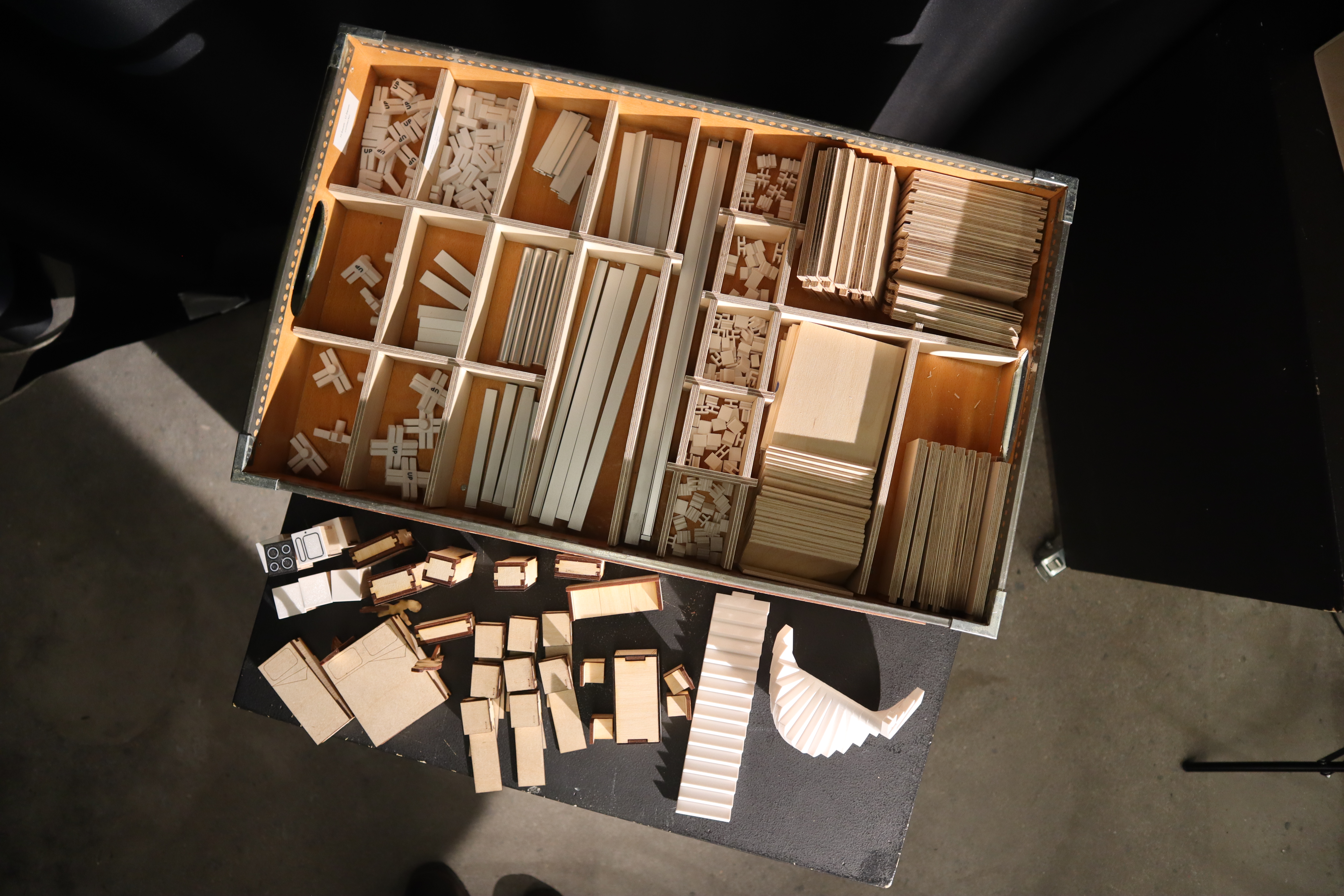 Plywood, 3D printed plastic parts, Metal extrusions