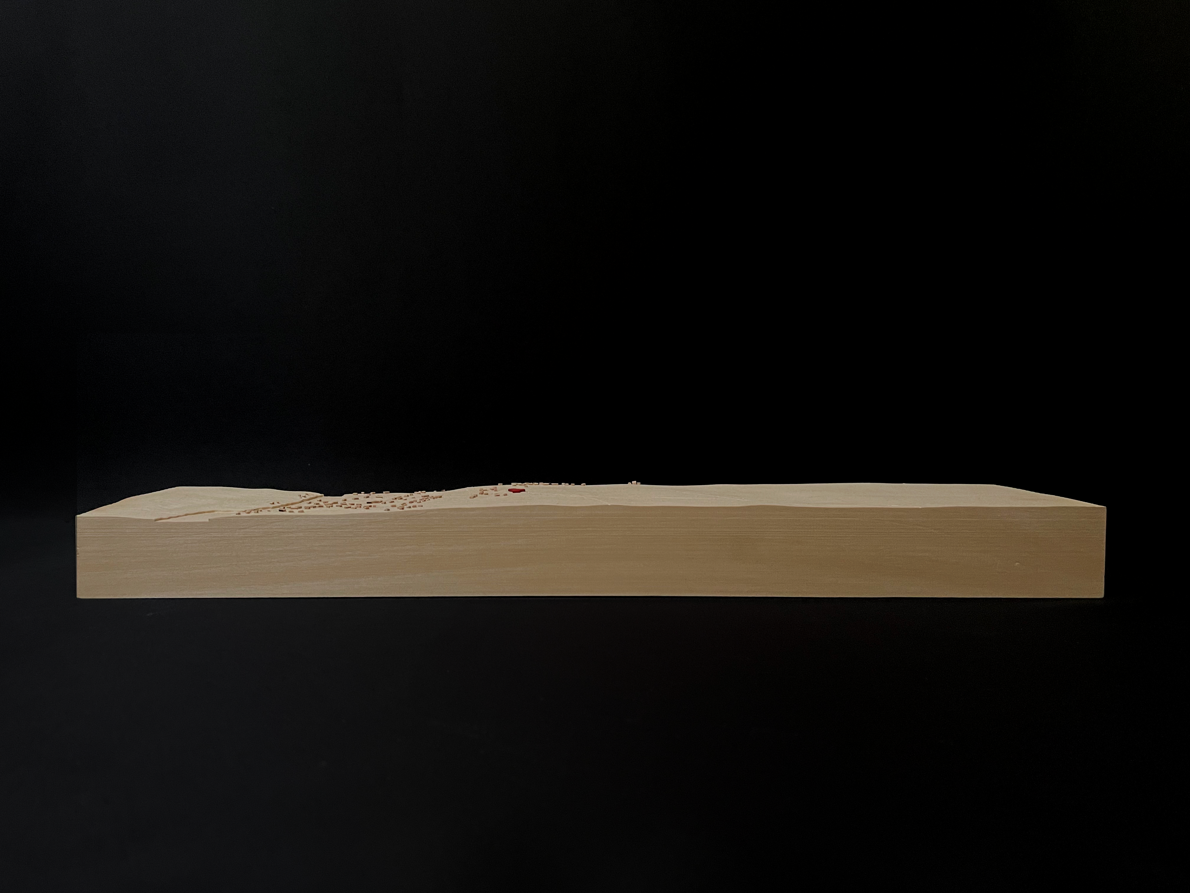 | dc.description.abstract | Čoarvemátta comes from the Sámi words for horn and root, after the innermost and strongest part of the reindeer antlers. This symbolizes different qualities and strengths and represents elements that unite, as Čoarvemátta will be a unifying force for the institutions that share the building: the Sami National Theatre Beaivváš and the Sami High School and Reindeer Herding School. The landscape model’s purpose is to show the placement of the building, both in relation to the built-up area of Kautokeino and to the vast plateau, which is reindeer herding lands. The small sliver format was chosen to highlight this relationship. The placement of the building is interesting, as the idea of a monumental, cultural building placed in such a non-urban way is unusual. | |