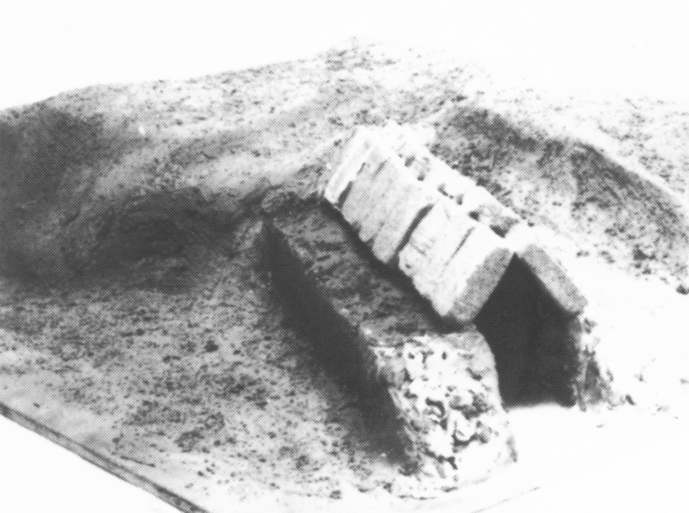 Modellen visar ett enkelt valv, som består av stenblock, lutade mot varandra.