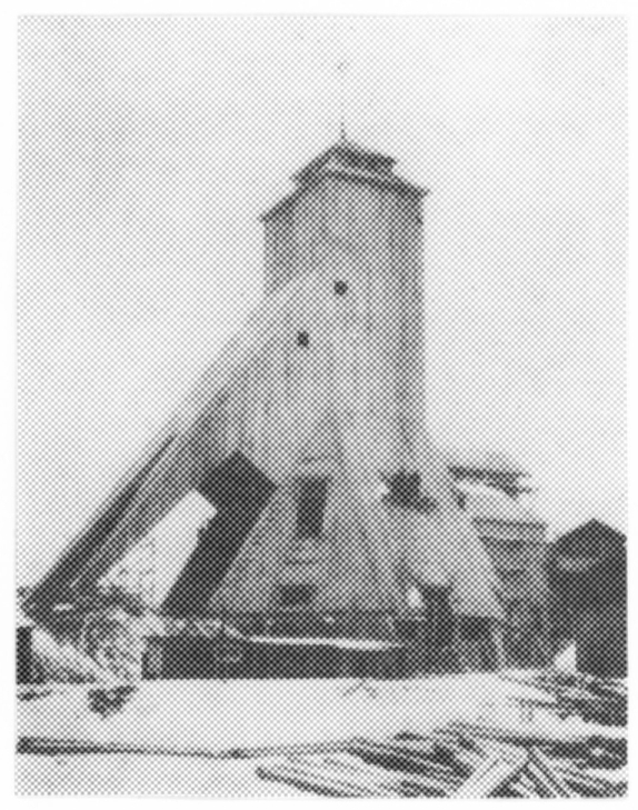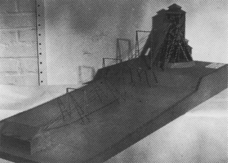 Modellen visar Riddarhyttans gruvlave, gruvschaktets överbyggnad, som bär linskivorna för malmhissarna. Arkitekter var Melchoir Wernstedt och Tage William-Olsson. De byggde flera gruvanläggningar kring 1920 med gamla byggnadstraditioner som förebild.