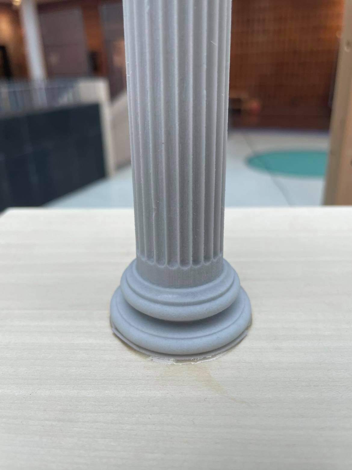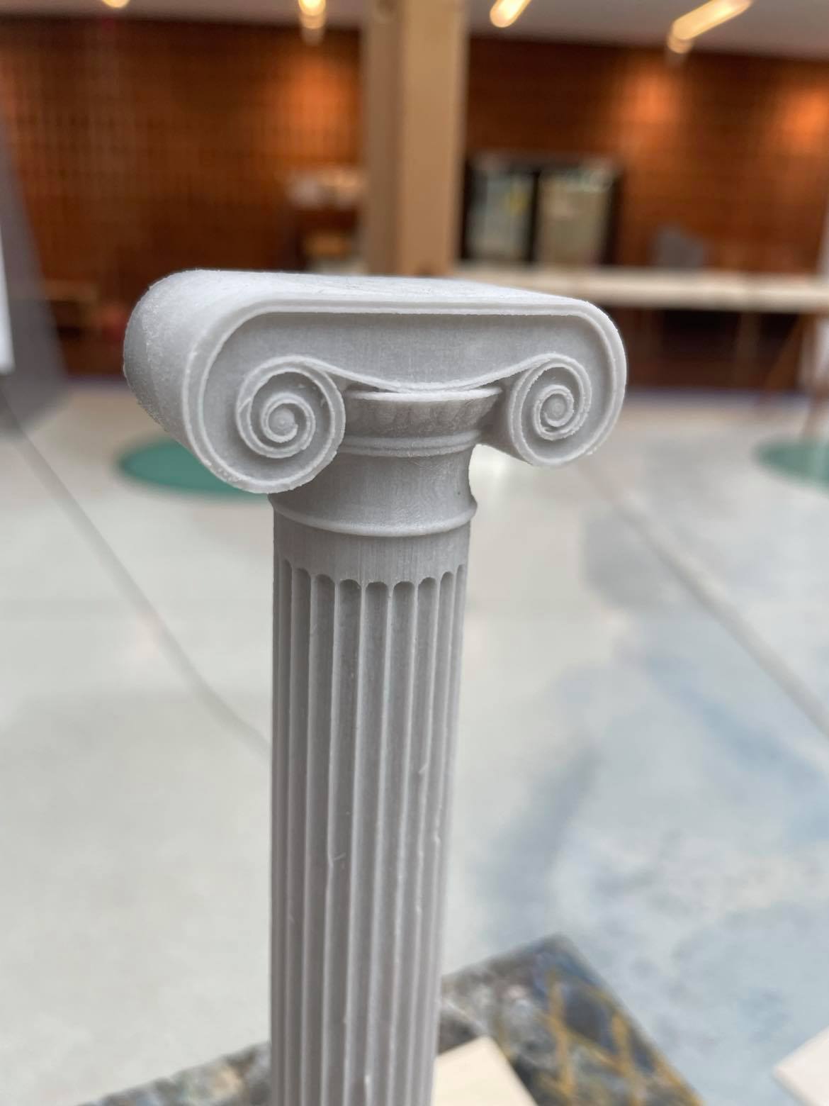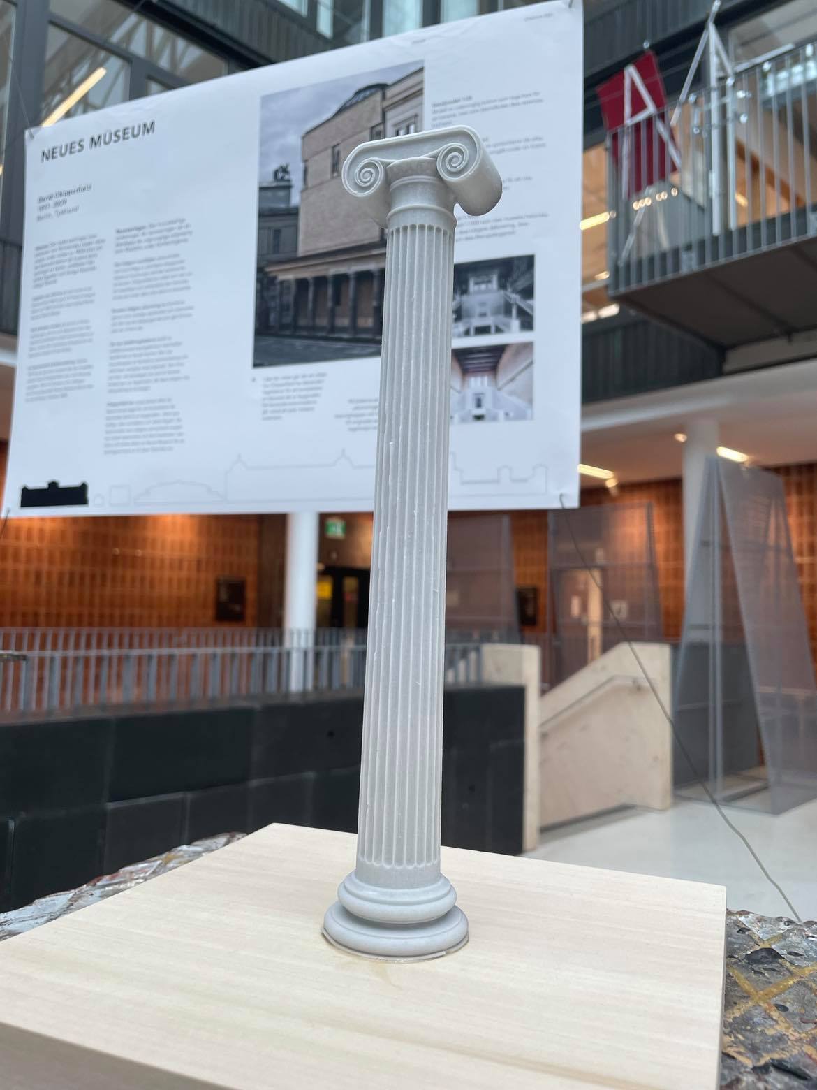 Modell av ursprunglig kolonn som togs bort för att bevaras men som återinfördes för dess estetiska kvalitéer.