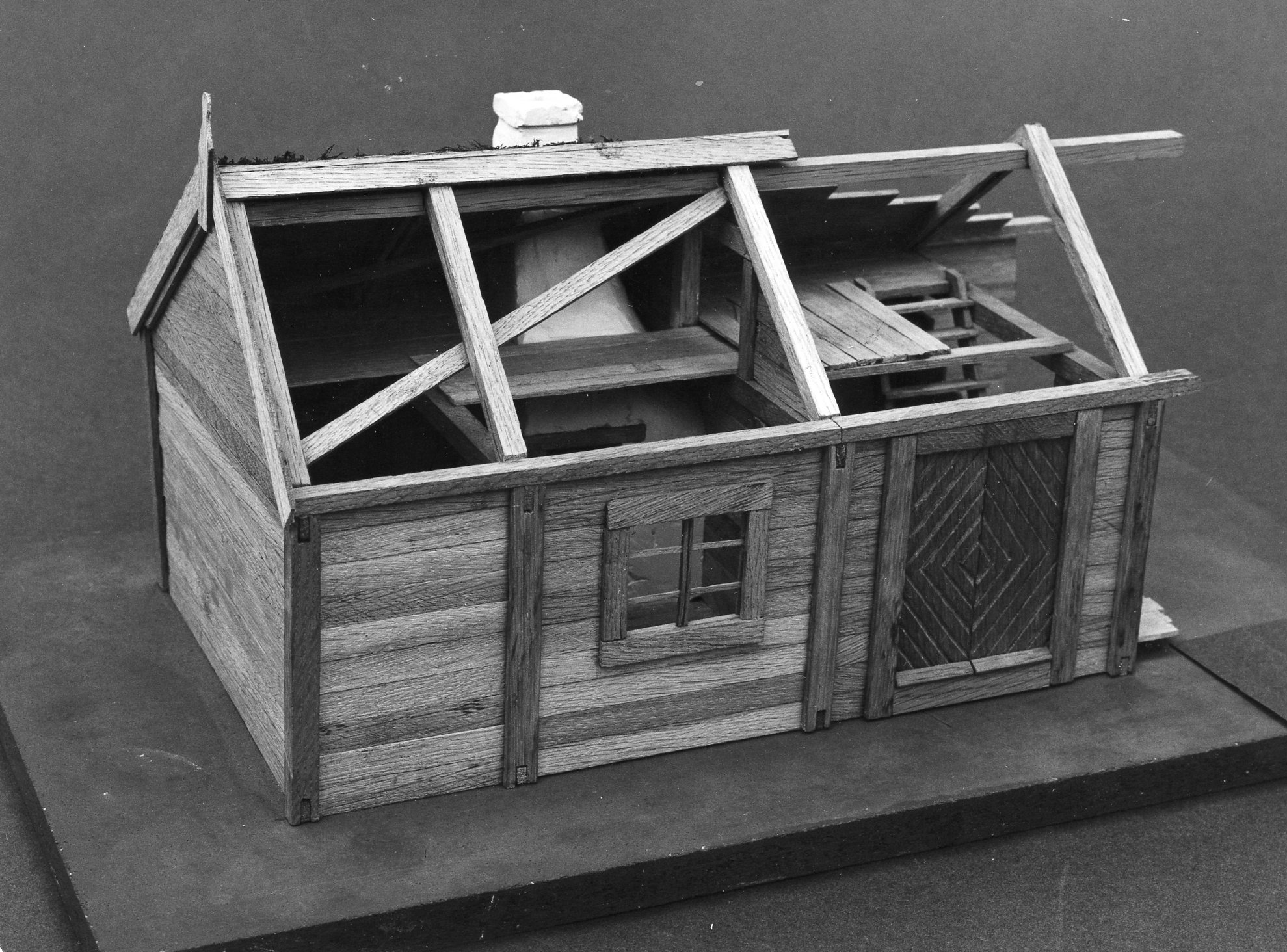 Den förhärskande byggnadstekniken på Öland har sedan mycket länge varit skiftesverket. Ön har varit skogfattig och de skeva ekträden har bäst tagits tillvara i korta plank. Konstruktionen med lertätade fogar har förmodligen stått emot det fuktiga och blåsiga klimatet bättre än rötkänsliga timmerknutar eller kalkstensmurar. Under senare tid har virke tagits från Småland och furu har fått ersätta ek i mindre utsatta lägen. Vid virkesbrist har också kallmurar ersatt tidigare träväggar. Modellen visar lillstugan. Den ligger enligt dansk tradition i öst-västlig riktning och kan antas vara det ursprungliga boningshuset.
