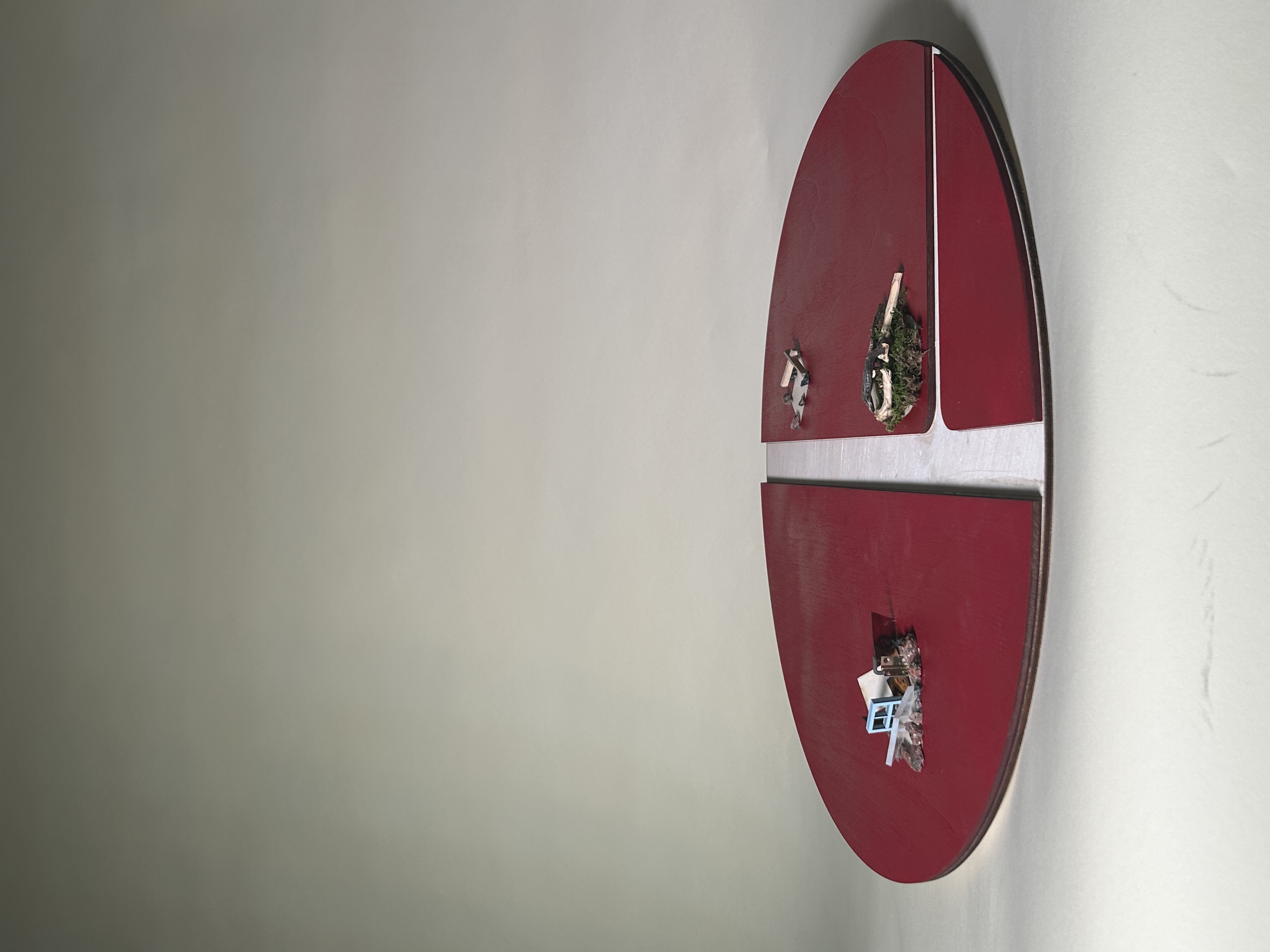 Konceptmodellen för Atostugan representerar de tre byggnaderna som återfinns på platsen. Platsen omkring är fylld av historiska lämningar, och på samma sätt visar konceptmodellen på vilka spår som lämnas kvar efter en lång tid. Modellen visar även på relationen mellan byggnaderna på tomten, och samspelar med situationsmodellen genom den röda markeringen.