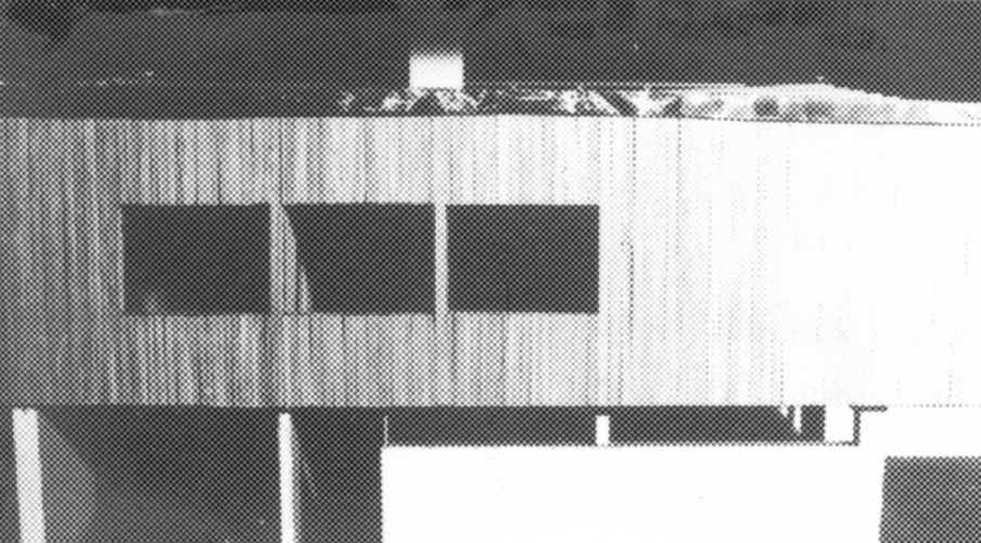 Modellen visar en suterrängvilla med regelstomme och fackverkstakstolar.