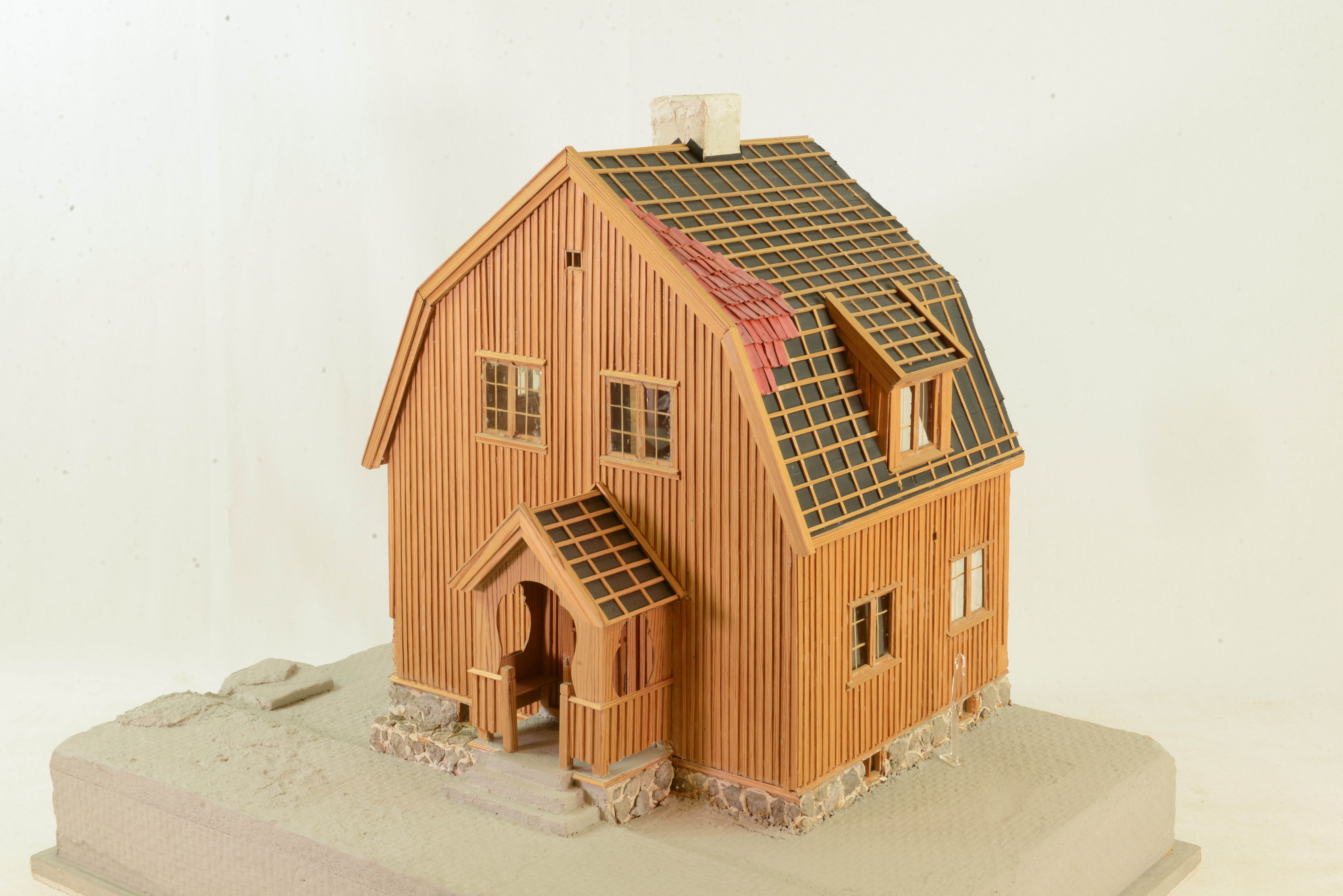 | dc.description.abstract | 1913 började Landala egnahemsområde i Göteborg att bebyggas. Fristående enfamiljshus sk enkelhus, dubbelhus för två familjer och radhus uppfördes efter typritningar av Carl Westman. Husen byggdes rustikt enkla i nationalromantisk stil med brunlaserade fasadpaneler, tegeltak, små spröjsade fönster och socklar av granit.Enhetlighet i stadsbilden var syftet med Albert Lilienbergs stadsplan för området. Planen som åtföljdes av särskilda byggnadsbestämmelser arbetade Lilienberg fram jämsides med Westmans arbete med husritningarna. I den bohuslänskt bergiga terrängen ligger husen mellan furor utefter smala, slingrande gator. Avsikten var att området skulle bebos av arbetare, men det fick från början en småborgerlig befolkning. Modellen visar hur ett hus i Landala är byggt. Det är ett hus för två familjer och kallades dubbelhus. | sv |